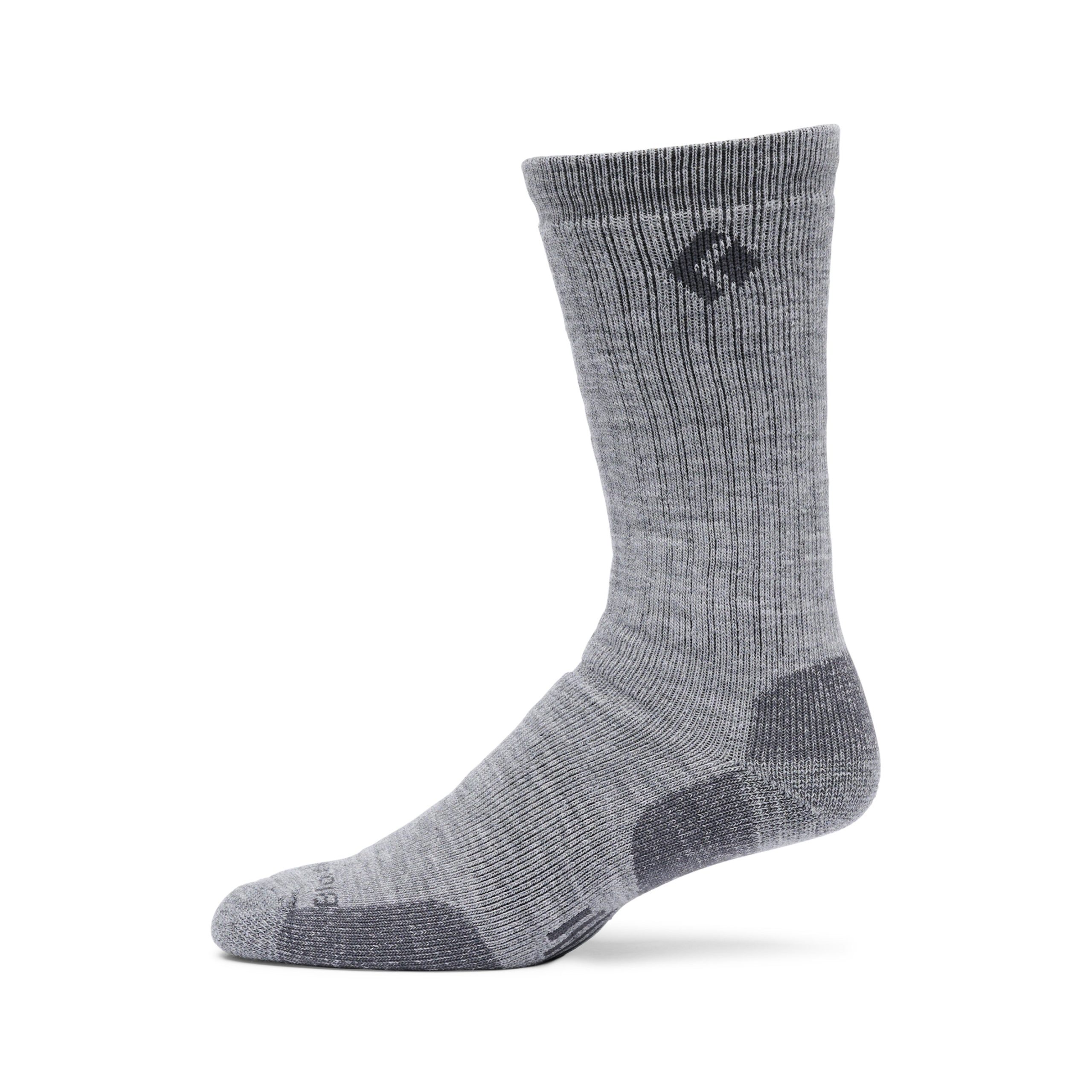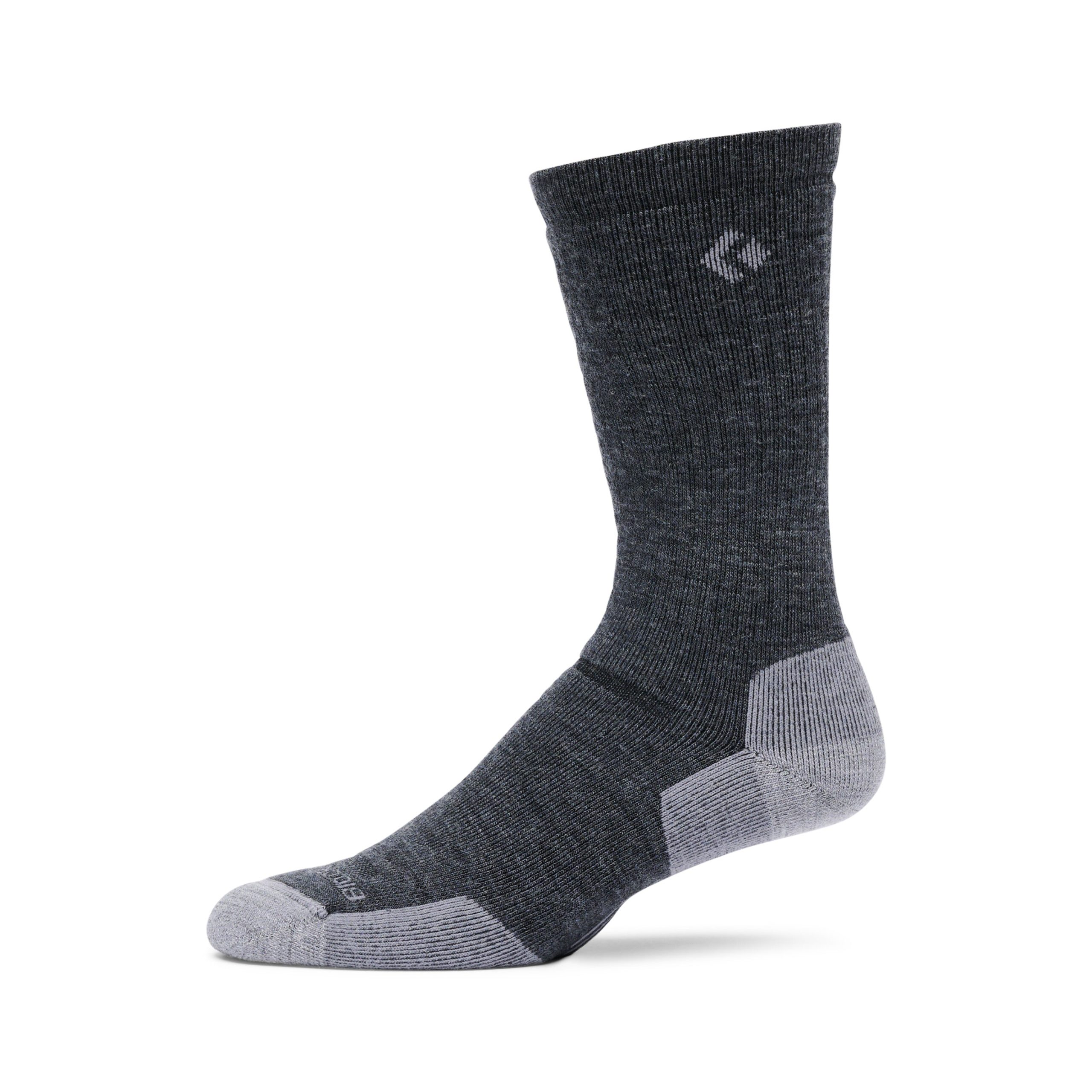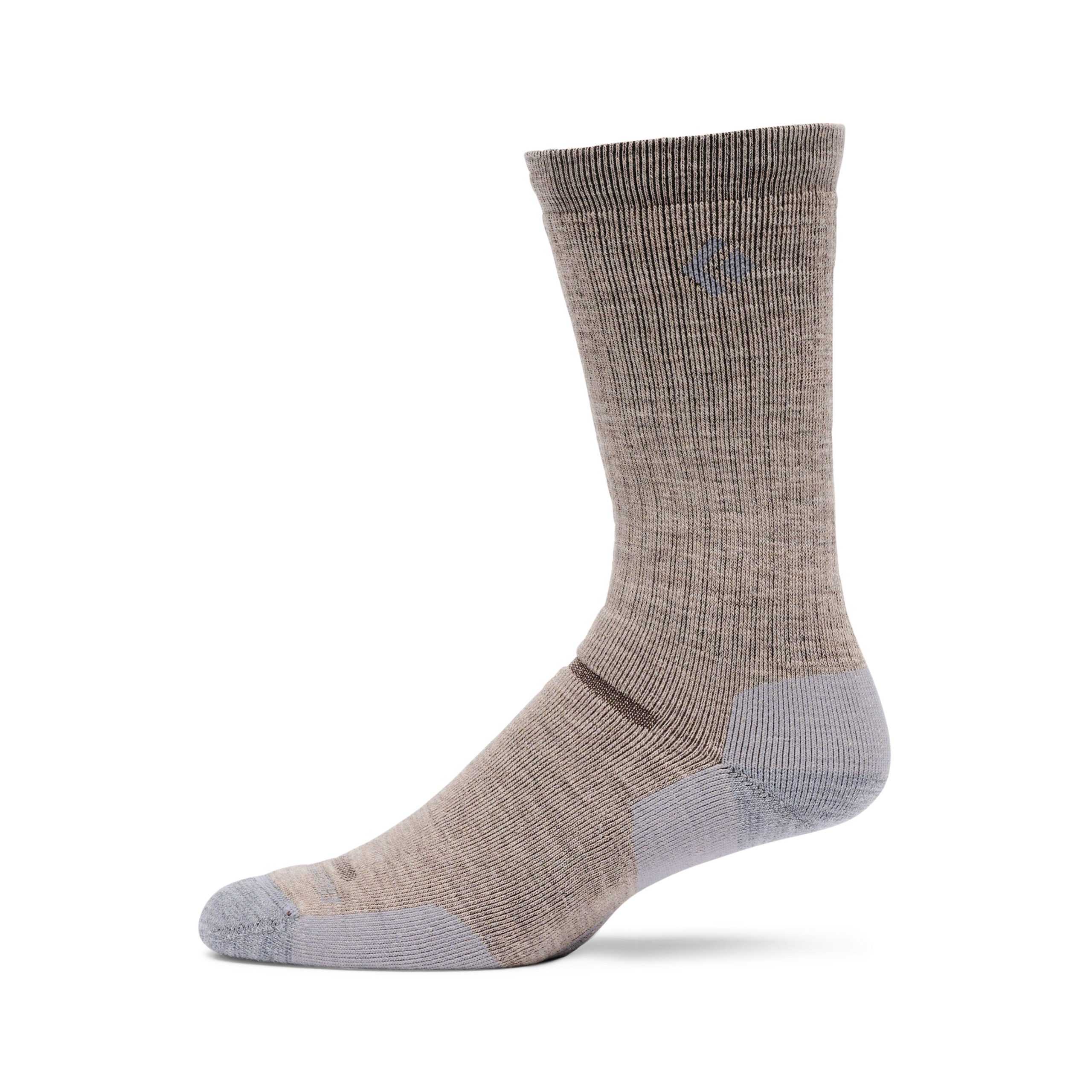 At Black Diamond we partnered with expert sock makers. Peter and Patty Duke. to create a line of merino socks for every mountain pursuit. Featuring heavy cushion surrounding the entire foot and leg. a reinforced heel and toe. plus ankle and arch support. the BD Heavy Mid-Calf Merino Sock is built for winter.