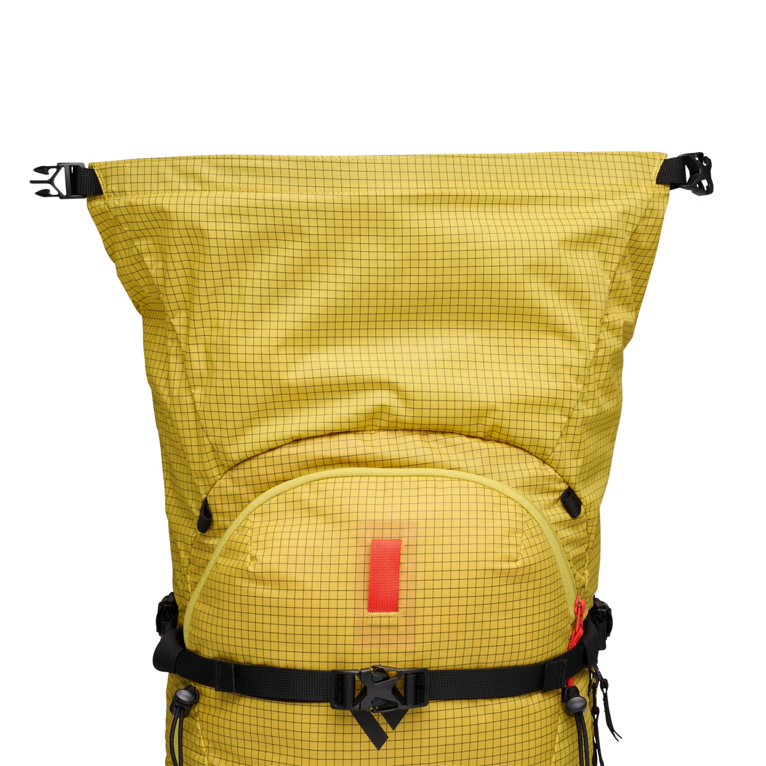 The Cirque 35 has a roll-top main compartment. an externally accessed avy safety pocket. and a quick-access side pocket to stash skins or ski crampons. Both A-frame and diagonal ski carry systems make transitions seamless. A padded waistband adds extra cushion and stretch-woven padded shoulder straps allow for a comfortable carry. Quick-deploy PickPocket piolet carry system is compatible with piolets or tools and comes in handy during unexpected sections of steep terrain.