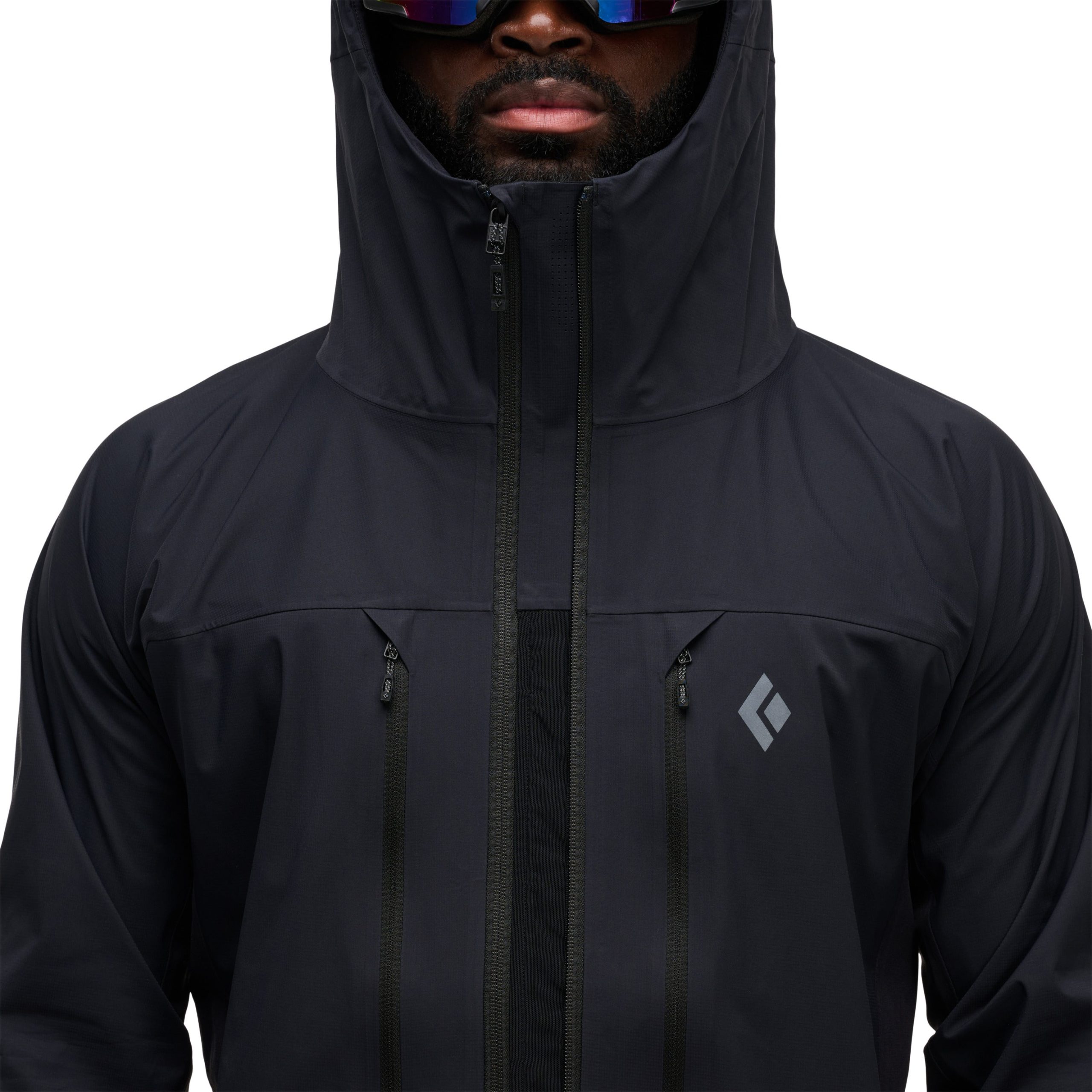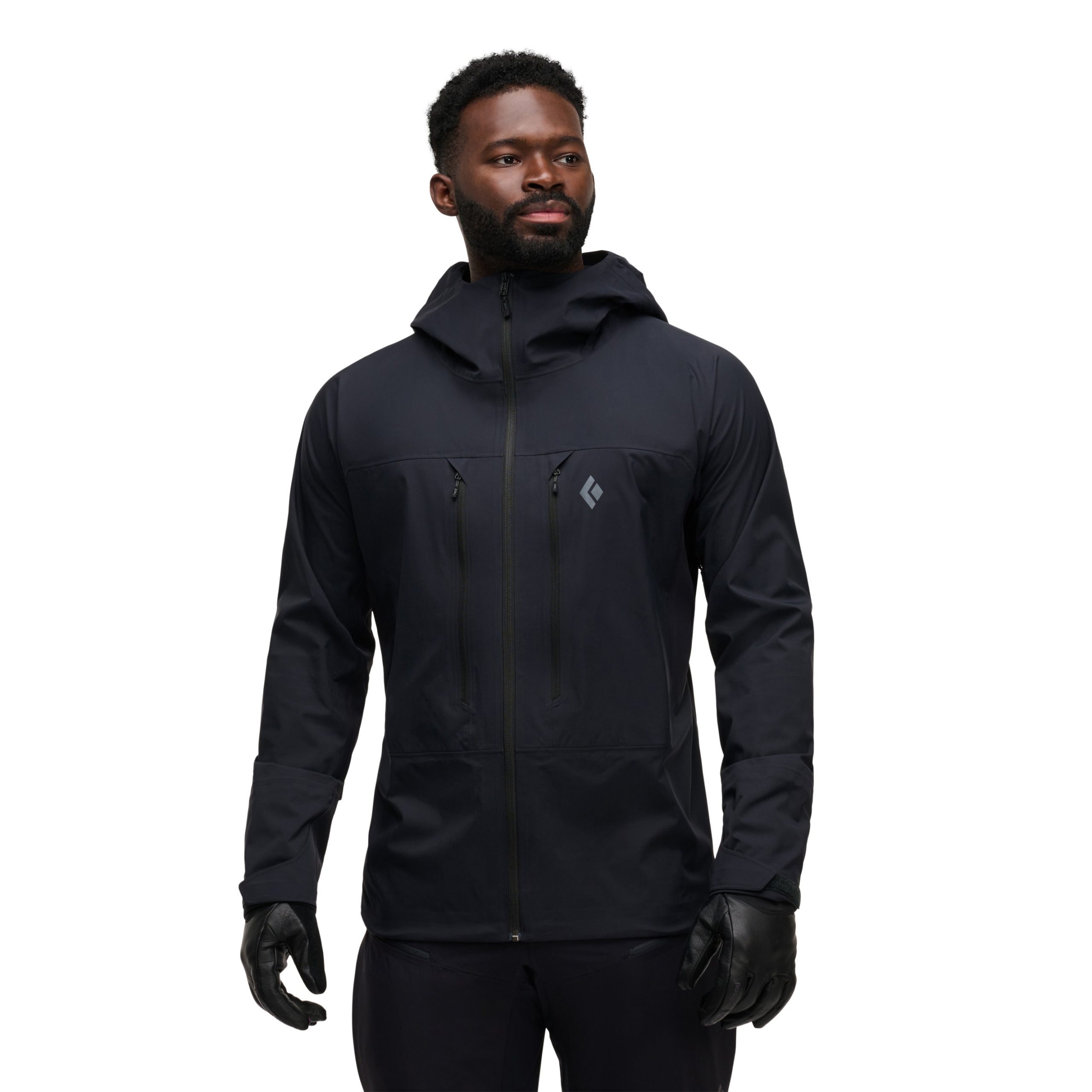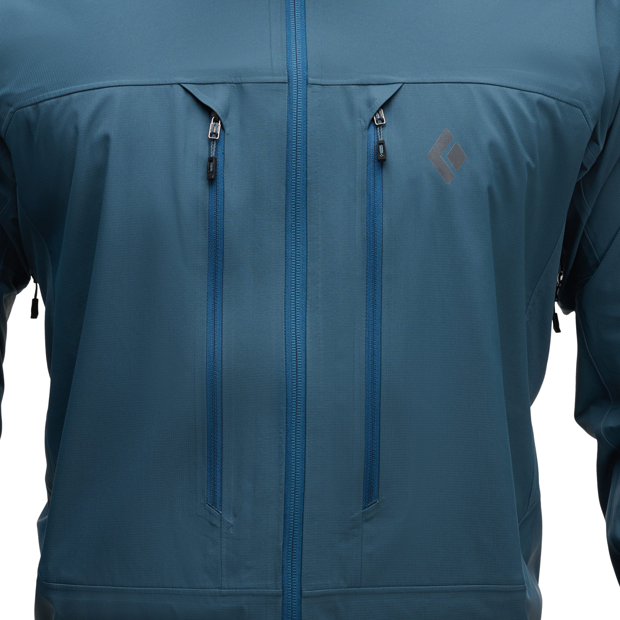 features a breathable softshell fabric in key placements for thermal regulation. while the chest. shoulders and hood remain impenetrable thanks to our propriety BD.dry??? waterproof/breathable solution. All fabric is treated with GTT’s Empel PFAS-free finish. an environmentally friendly DWR that’s superior in durability and performance. Add 4-way stretch for mobility and this shell keeps you hustling on the skin track while sending it on the way down. An innovative. center front dual zipper features a built-in mesh panel for venting on the climb. and the perforated panel on the collar allows you to breath freely while protecting your face from the brisk air. The Dawn Patrol Hybrid comes with two harness-compatible chest pockets that hold skins. an internal media pocket and a ski-helmet compatible hood. Velcro cuffs are combined with a lightweight wrist gaiter for ultimate protection