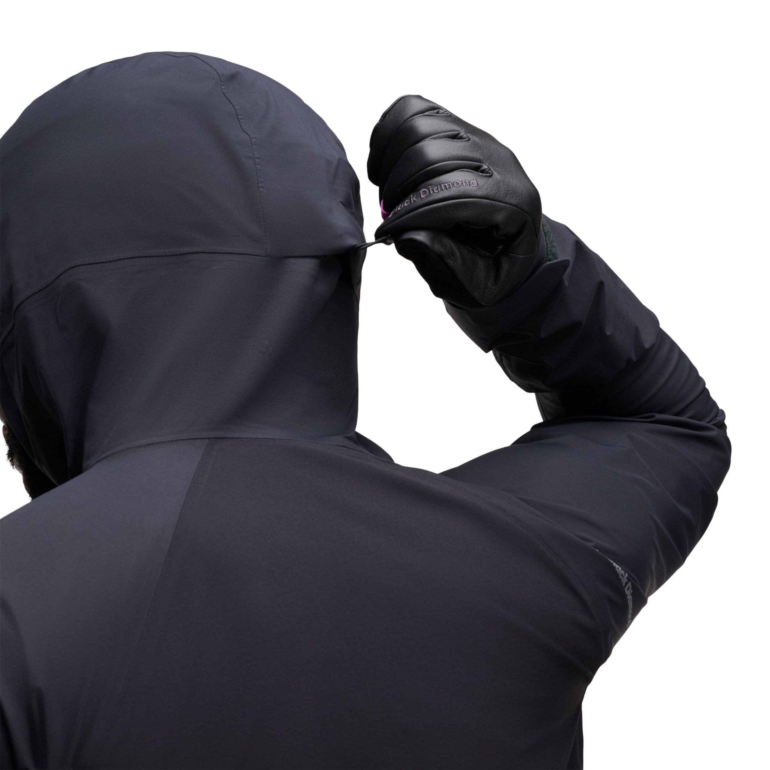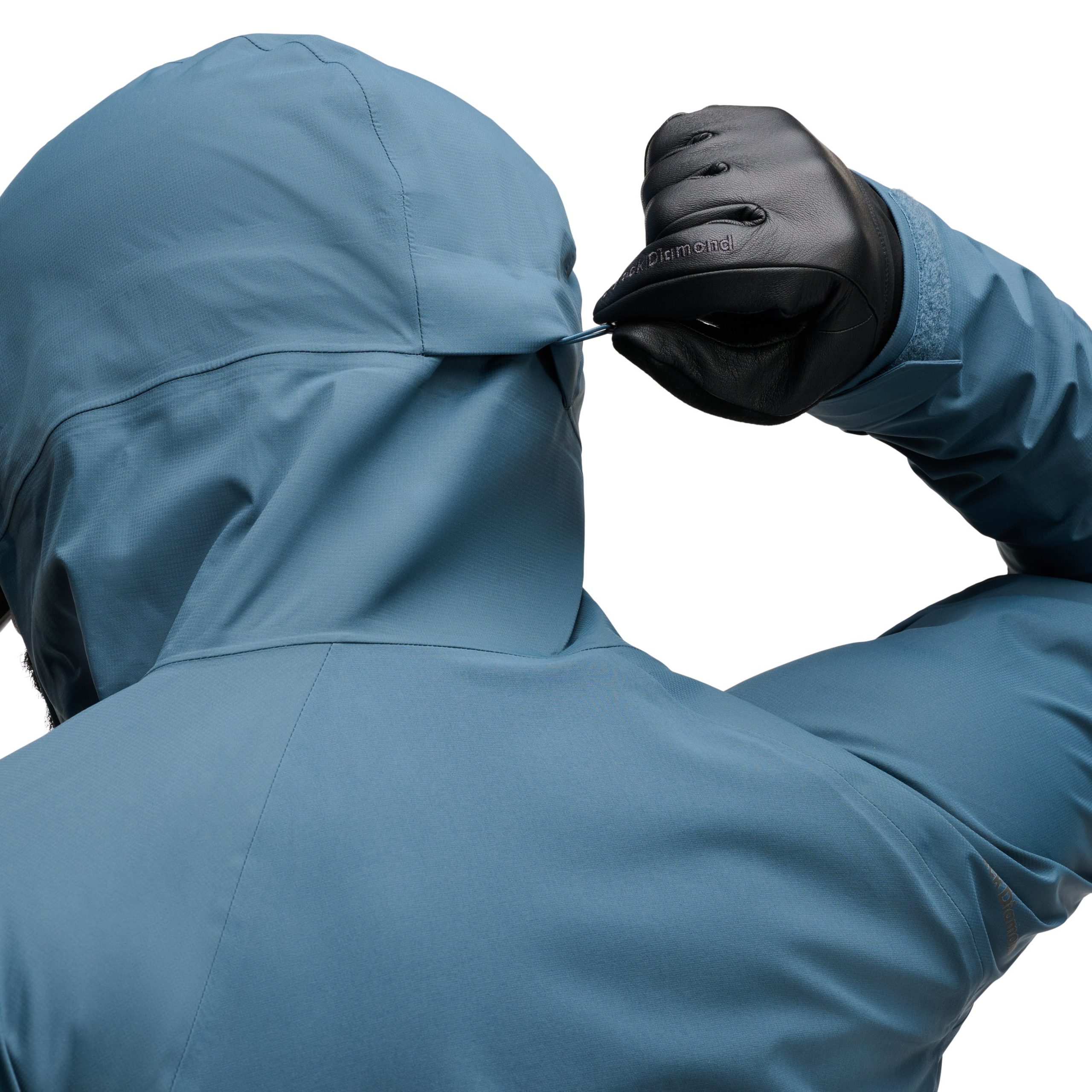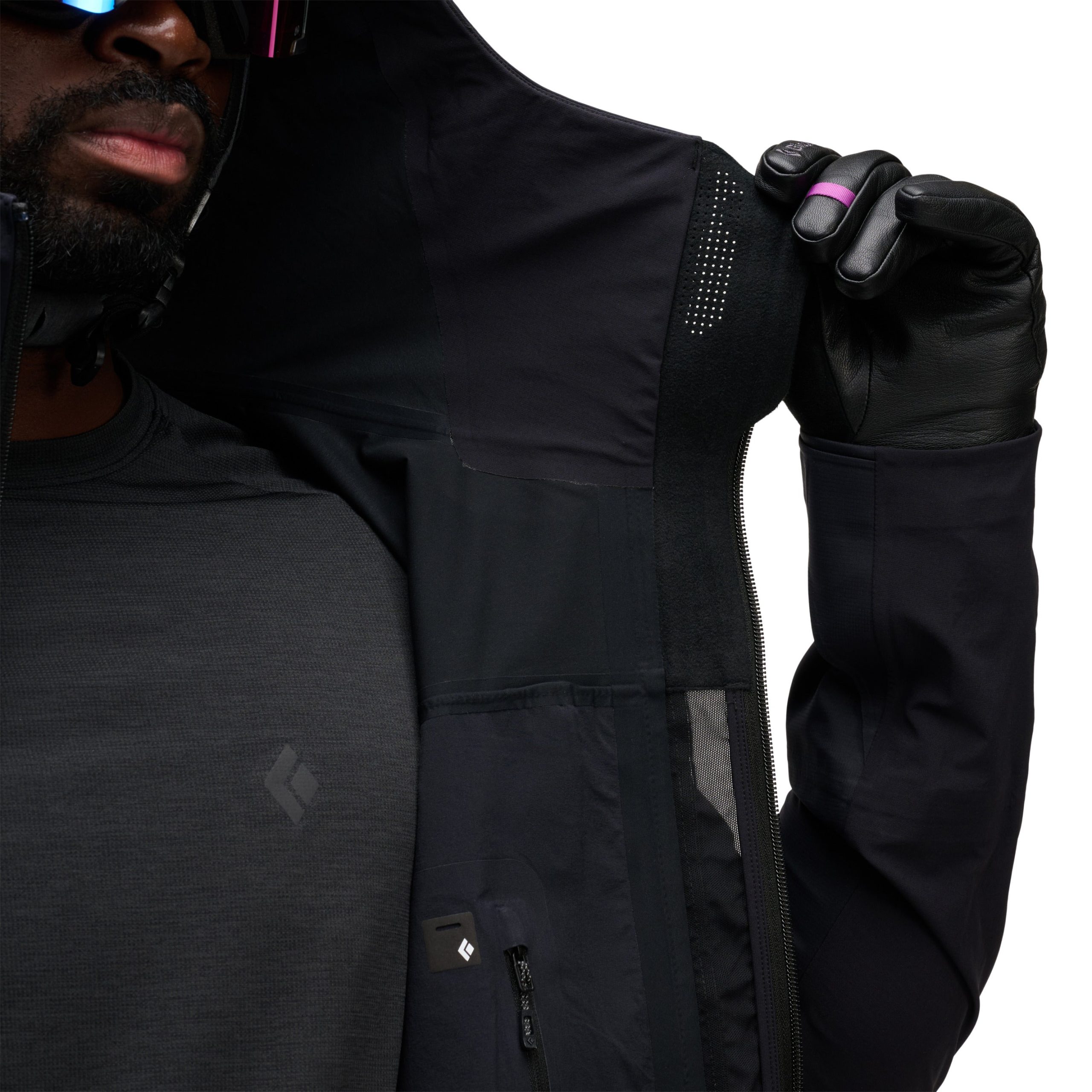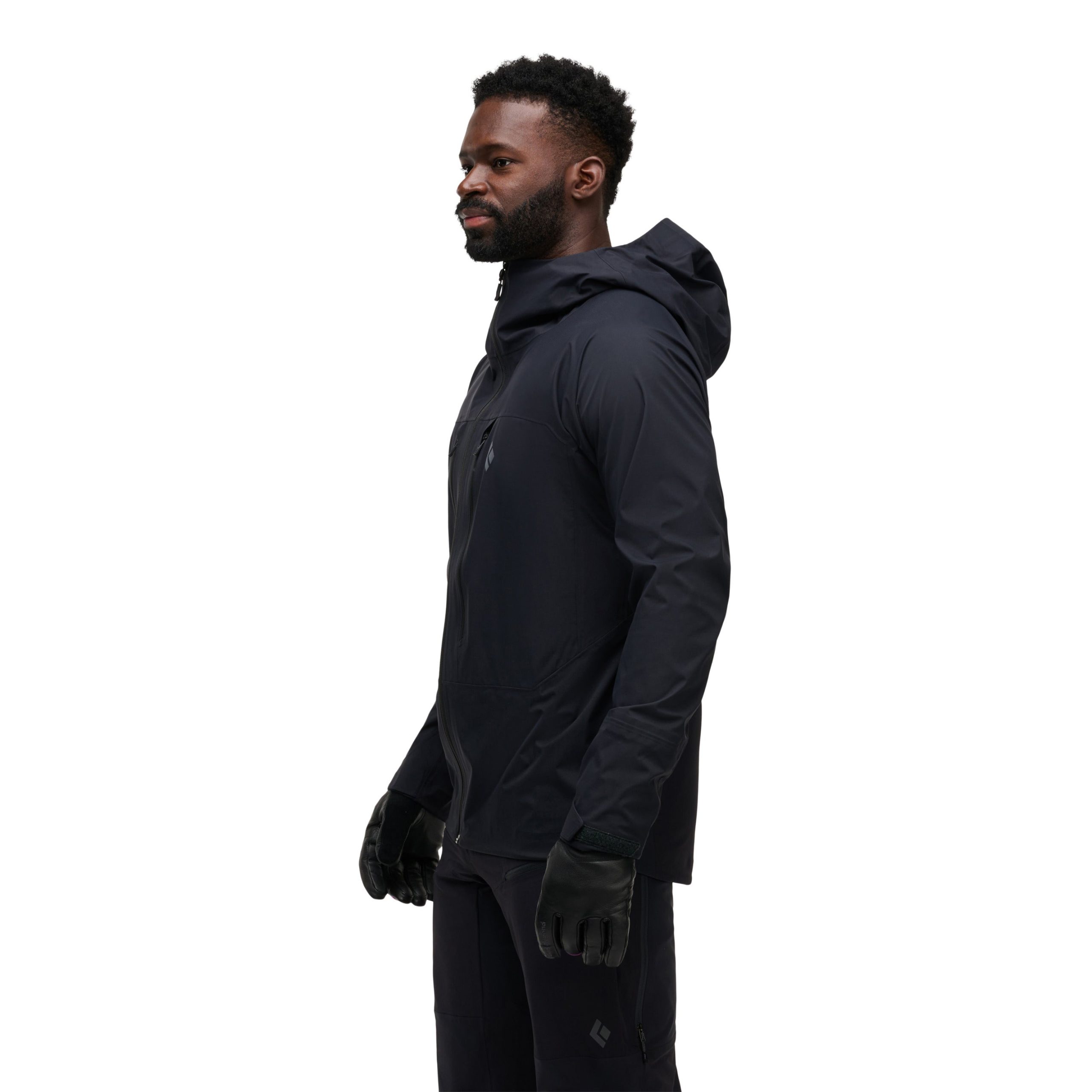 features a breathable softshell fabric in key placements for thermal regulation. while the chest. shoulders and hood remain impenetrable thanks to our propriety BD.dry??? waterproof/breathable solution. All fabric is treated with GTT’s Empel PFAS-free finish. an environmentally friendly DWR that’s superior in durability and performance. Add 4-way stretch for mobility and this shell keeps you hustling on the skin track while sending it on the way down. An innovative. center front dual zipper features a built-in mesh panel for venting on the climb. and the perforated panel on the collar allows you to breath freely while protecting your face from the brisk air. The Dawn Patrol Hybrid comes with two harness-compatible chest pockets that hold skins. an internal media pocket and a ski-helmet compatible hood. Velcro cuffs are combined with a lightweight wrist gaiter for ultimate protection