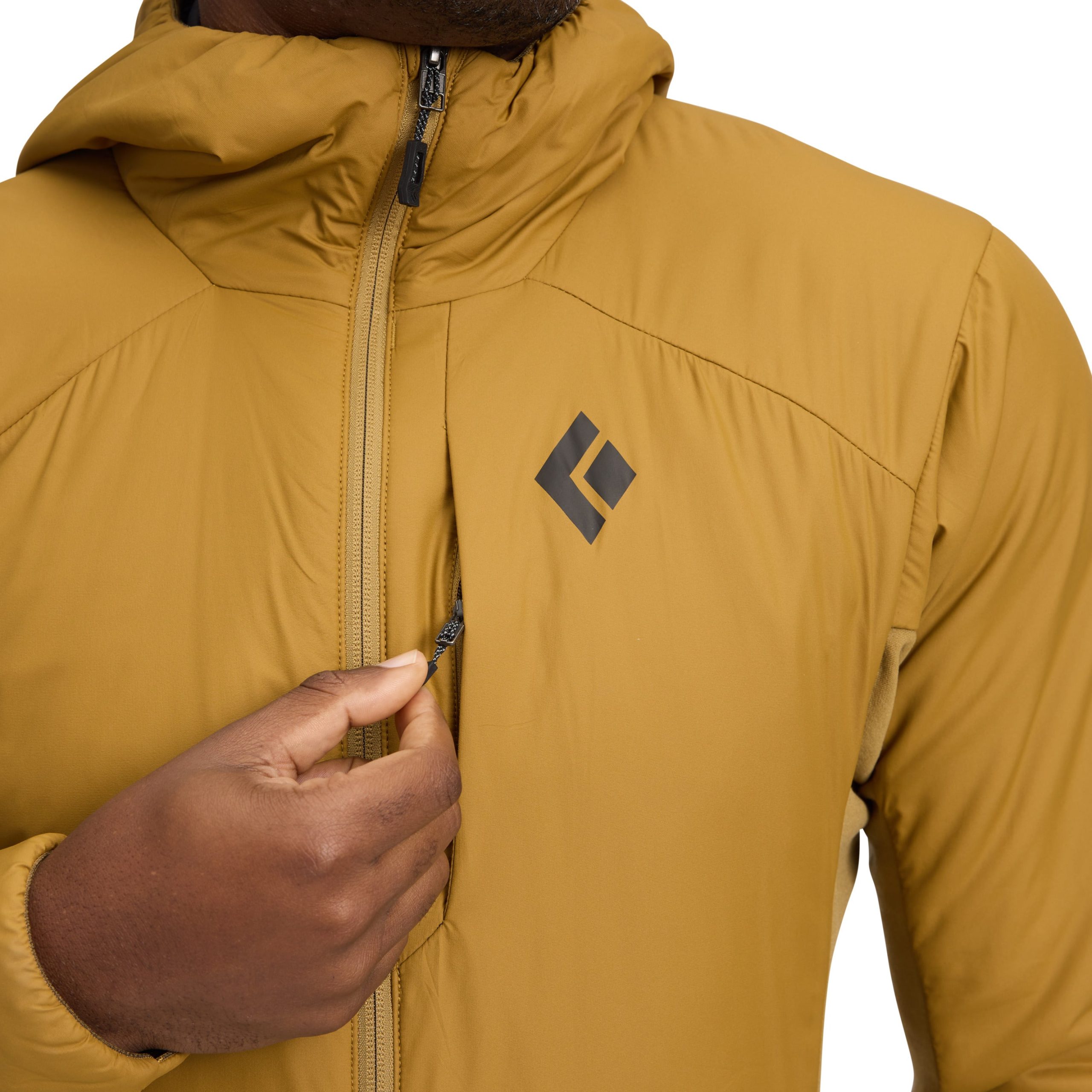 the First Light 1.0 Stretch Hoody insulates. breathes and moves with you through pre-dawn starts. headlamp descents and everything in between. This dynamic hoody features migration-resistant PrimaLoft?? Gold Active Insulation in the hood. chest and arms. with a blended merino wool backing and sleeve for increased breathability and range of motion. Its lightweight. 20D stretch nylon ripstop shell has a PFAS-free DWR coating that resists unexpected weather. The jacket also has zippered chest pockets that store small essentials.
