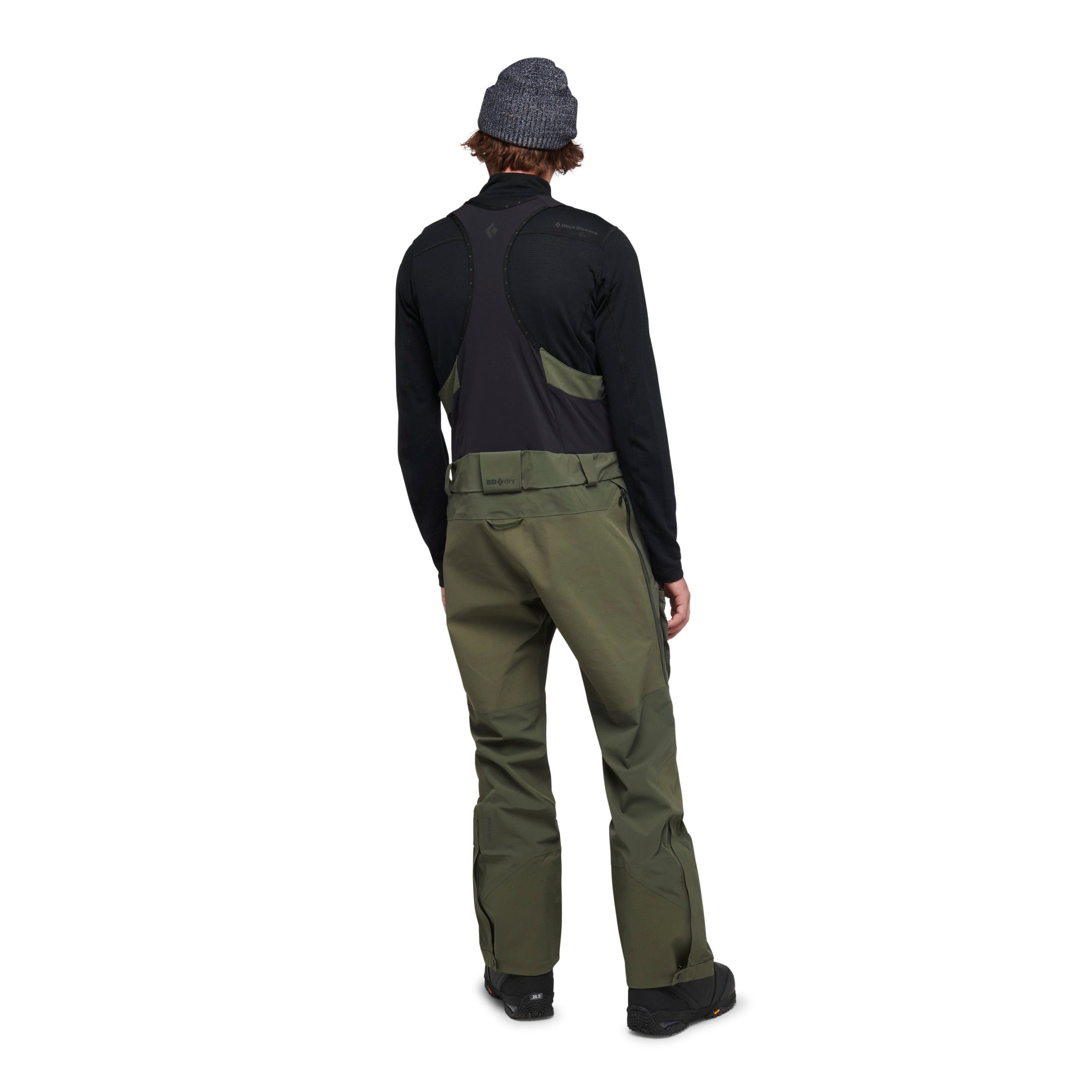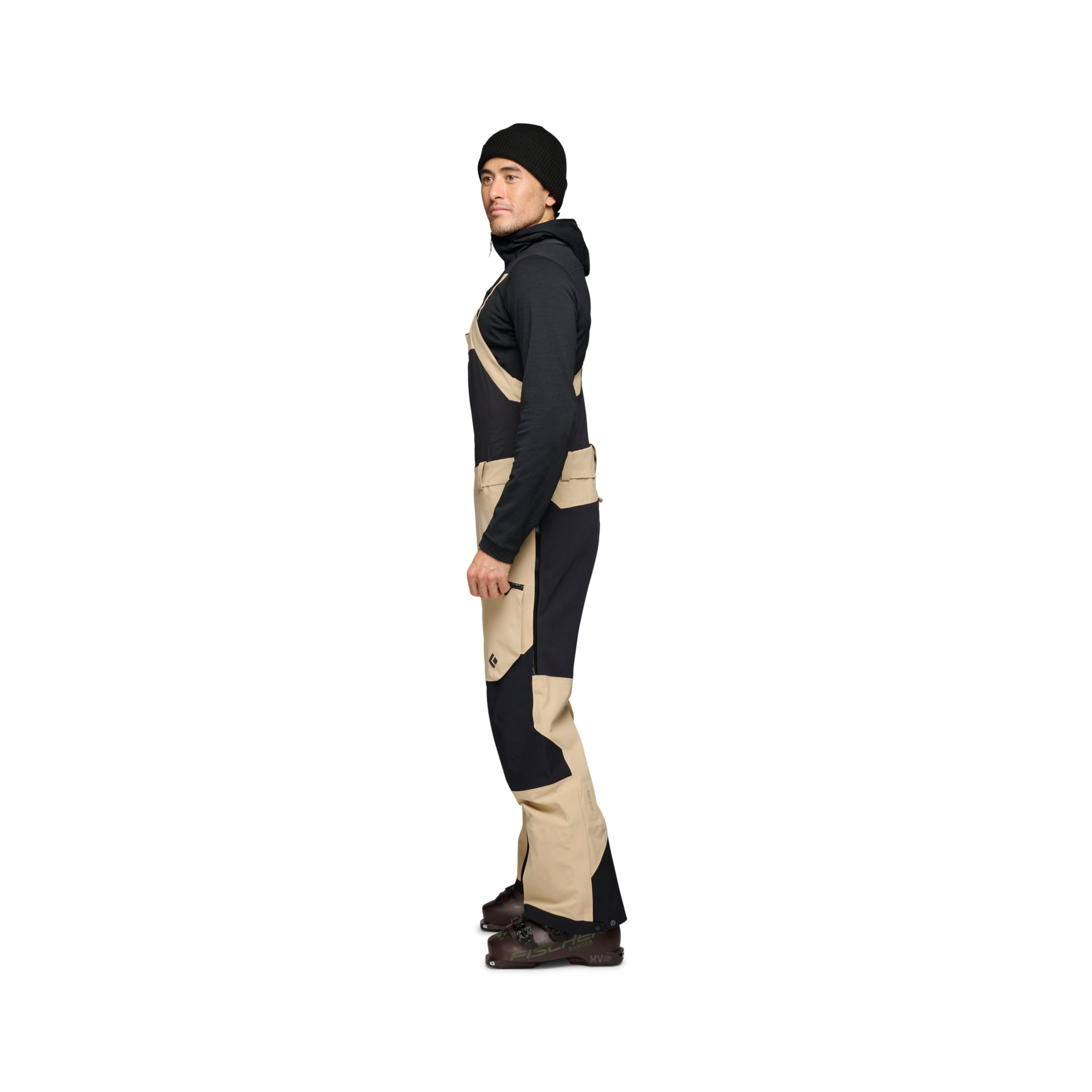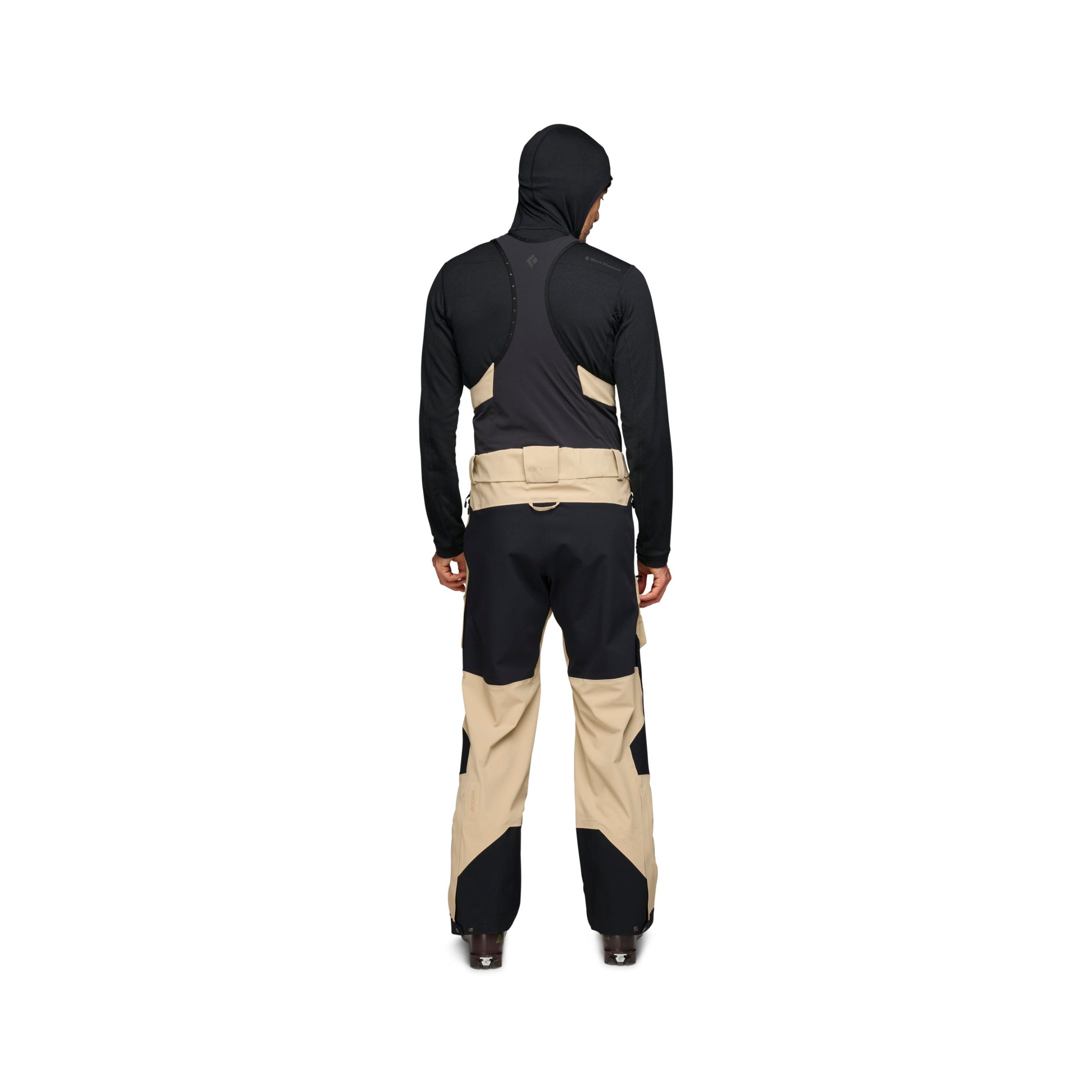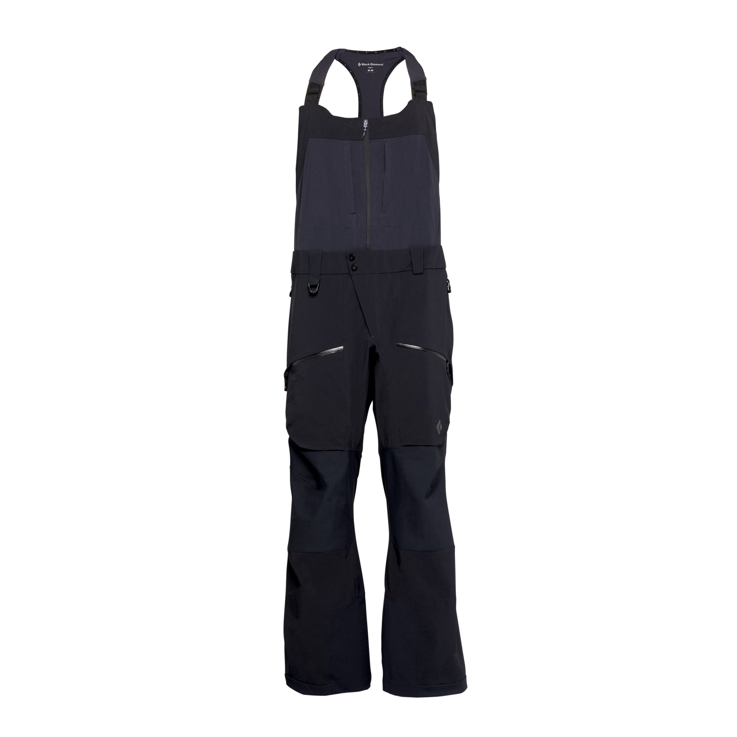 the Recon Stretch Pro Bib combines a breathable stretch racerback upper bib with a reinforced seat and knees for added protection in the backcountry. The BD.dry??shell fabric seals out moisture for over-the-shoulder off-piste conditions and storm day sidecountry missions. while the four-way stretch adds mobility and breathability while earning your turns. A center-front zipper entry provides easy on and off. and the separating front bib strap has a ladder-lock adjustment for dialing in the fit.