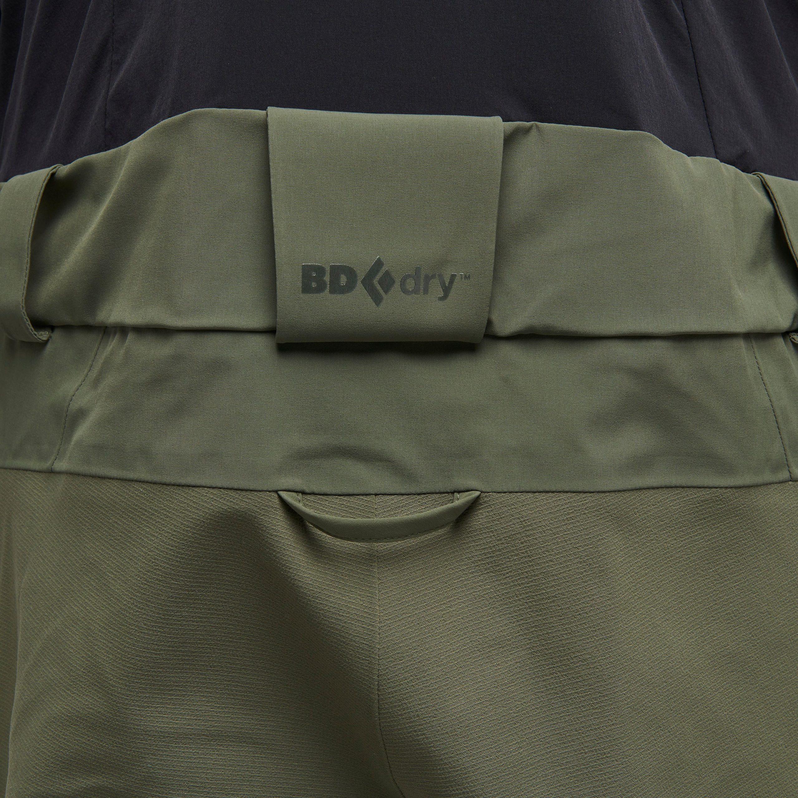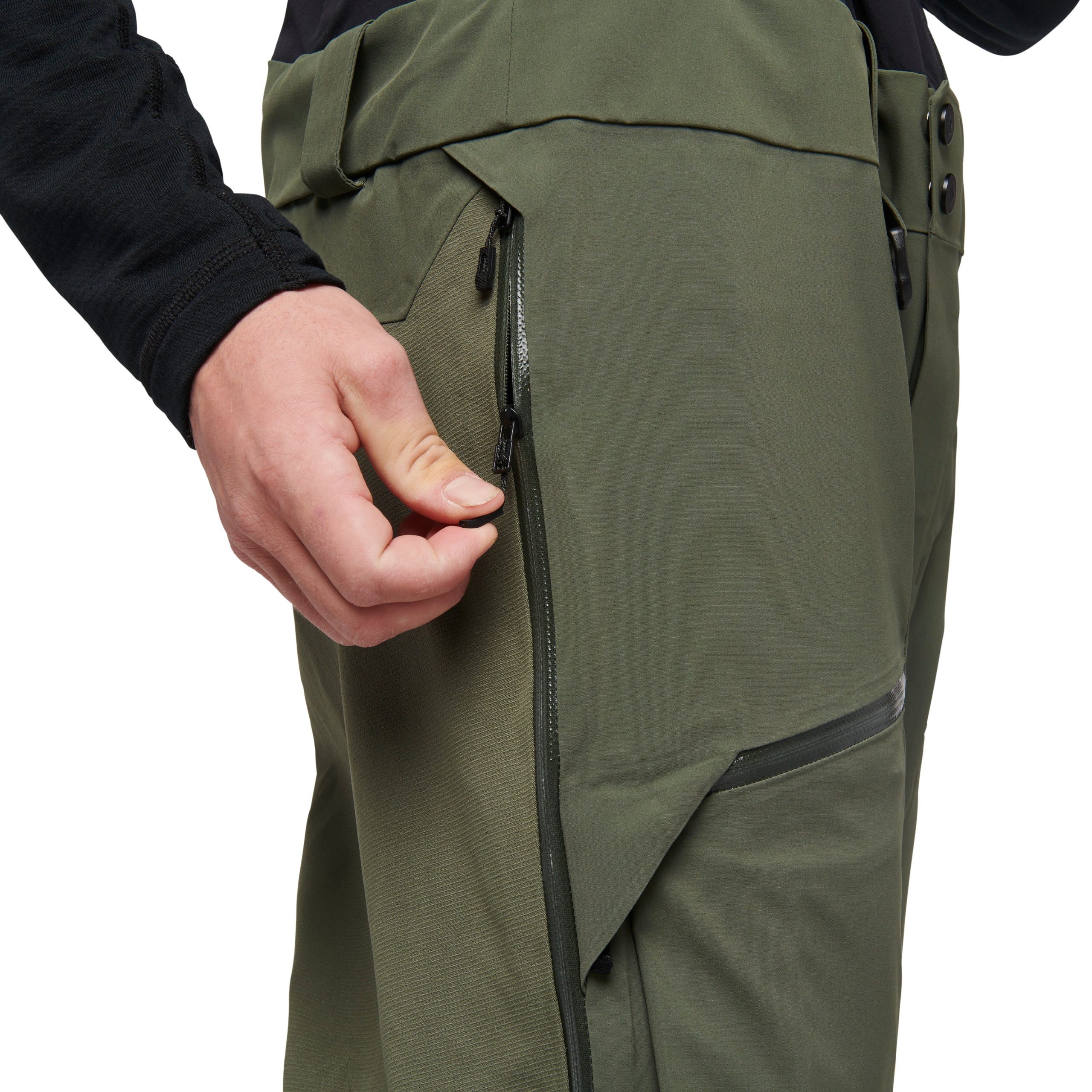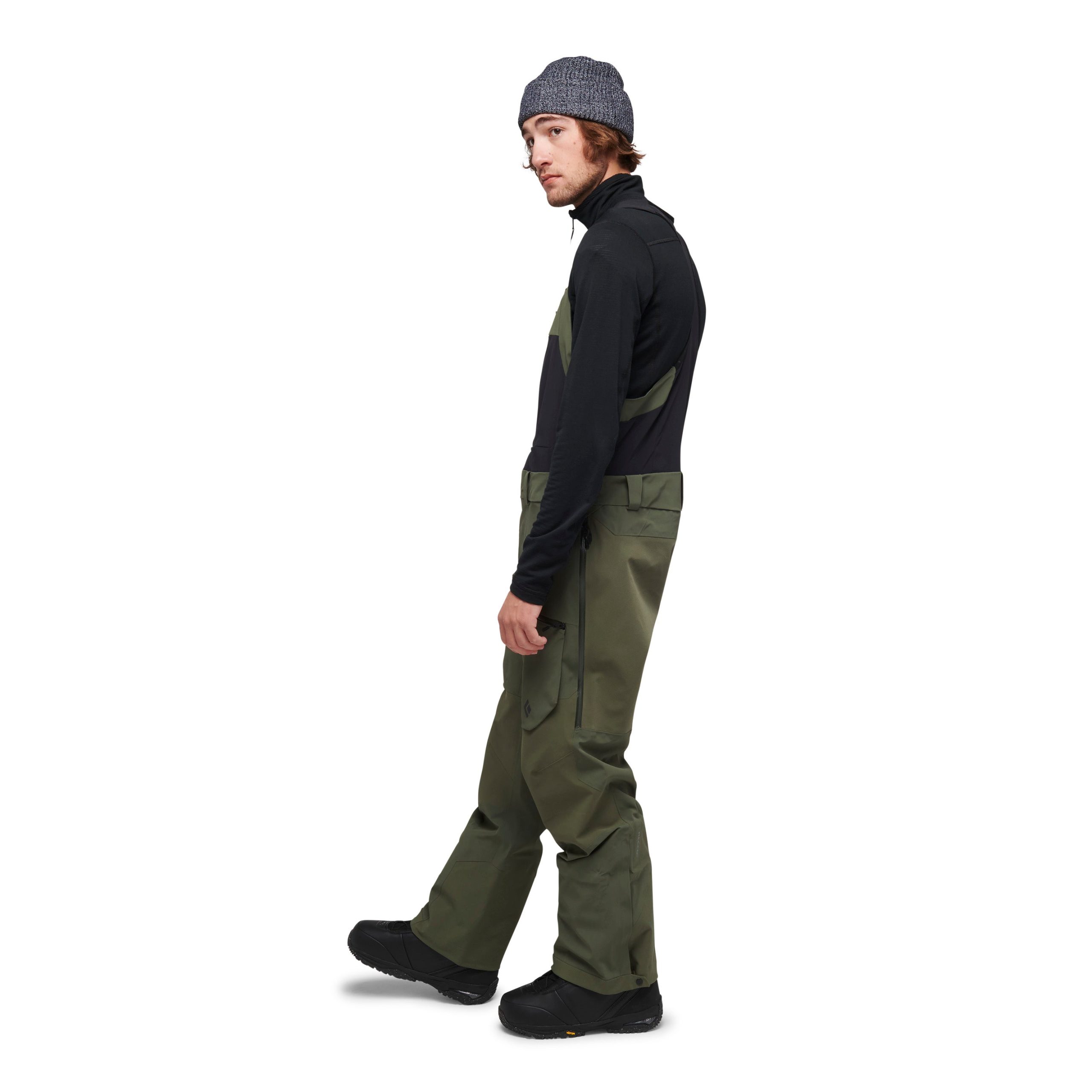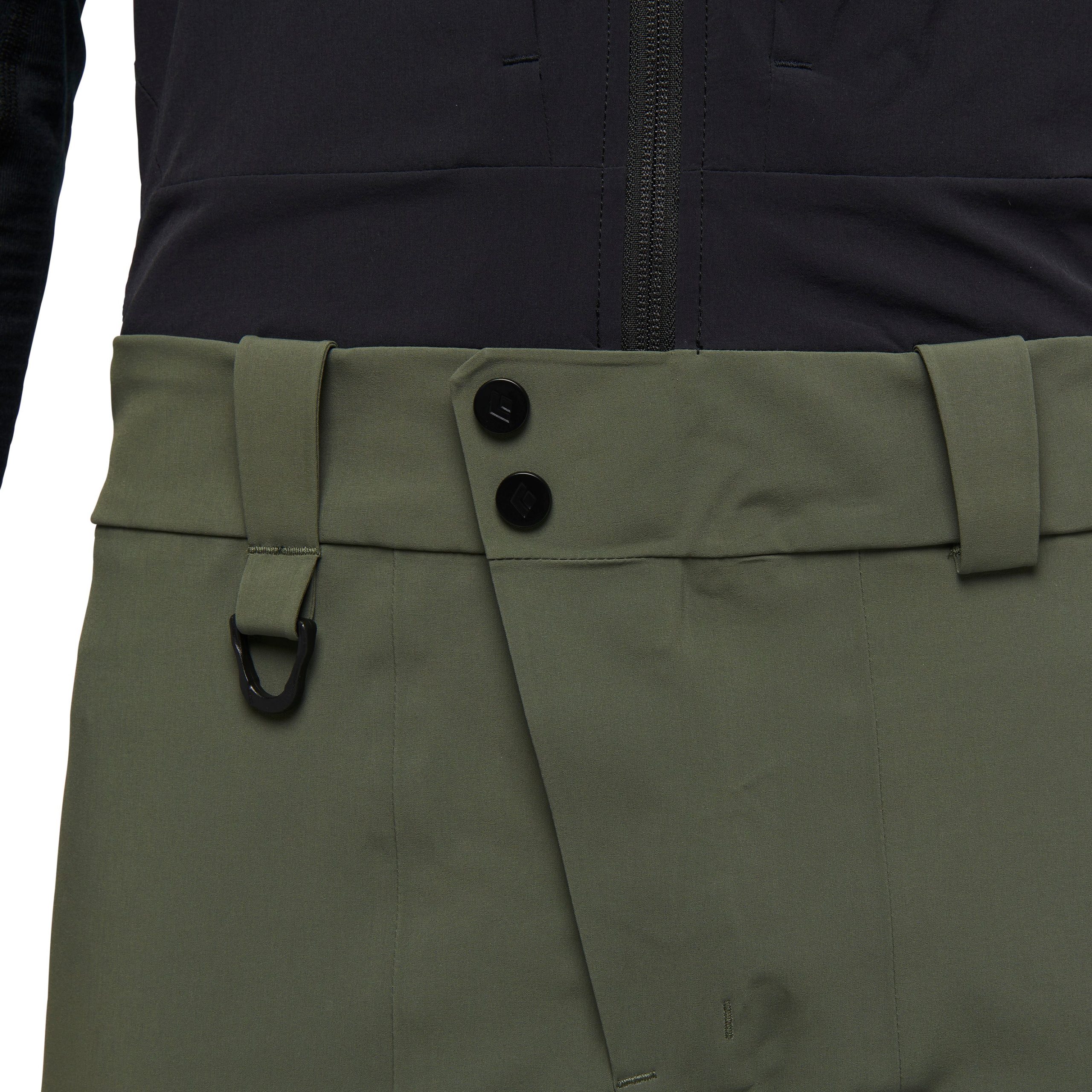 the Recon Stretch Pro Bib combines a breathable stretch racerback upper bib with a reinforced seat and knees for added protection in the backcountry. The BD.dry??shell fabric seals out moisture for over-the-shoulder off-piste conditions and storm day sidecountry missions. while the four-way stretch adds mobility and breathability while earning your turns. A center-front zipper entry provides easy on and off. and the separating front bib strap has a ladder-lock adjustment for dialing in the fit.
