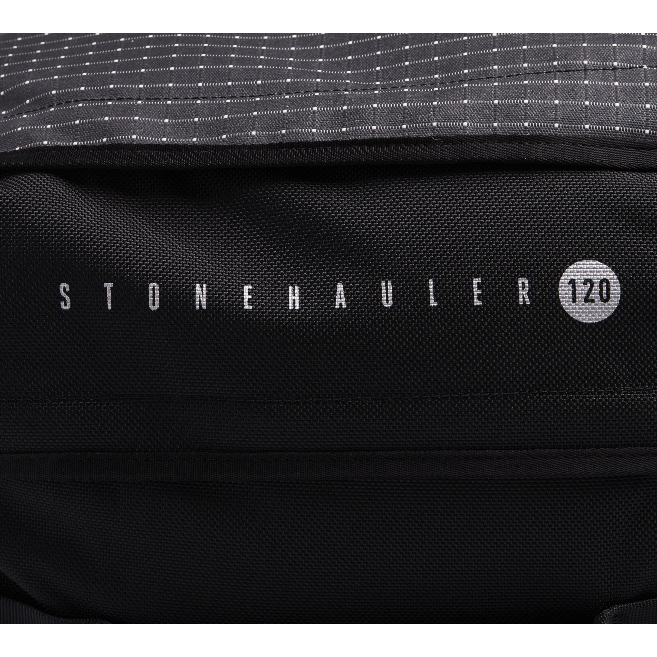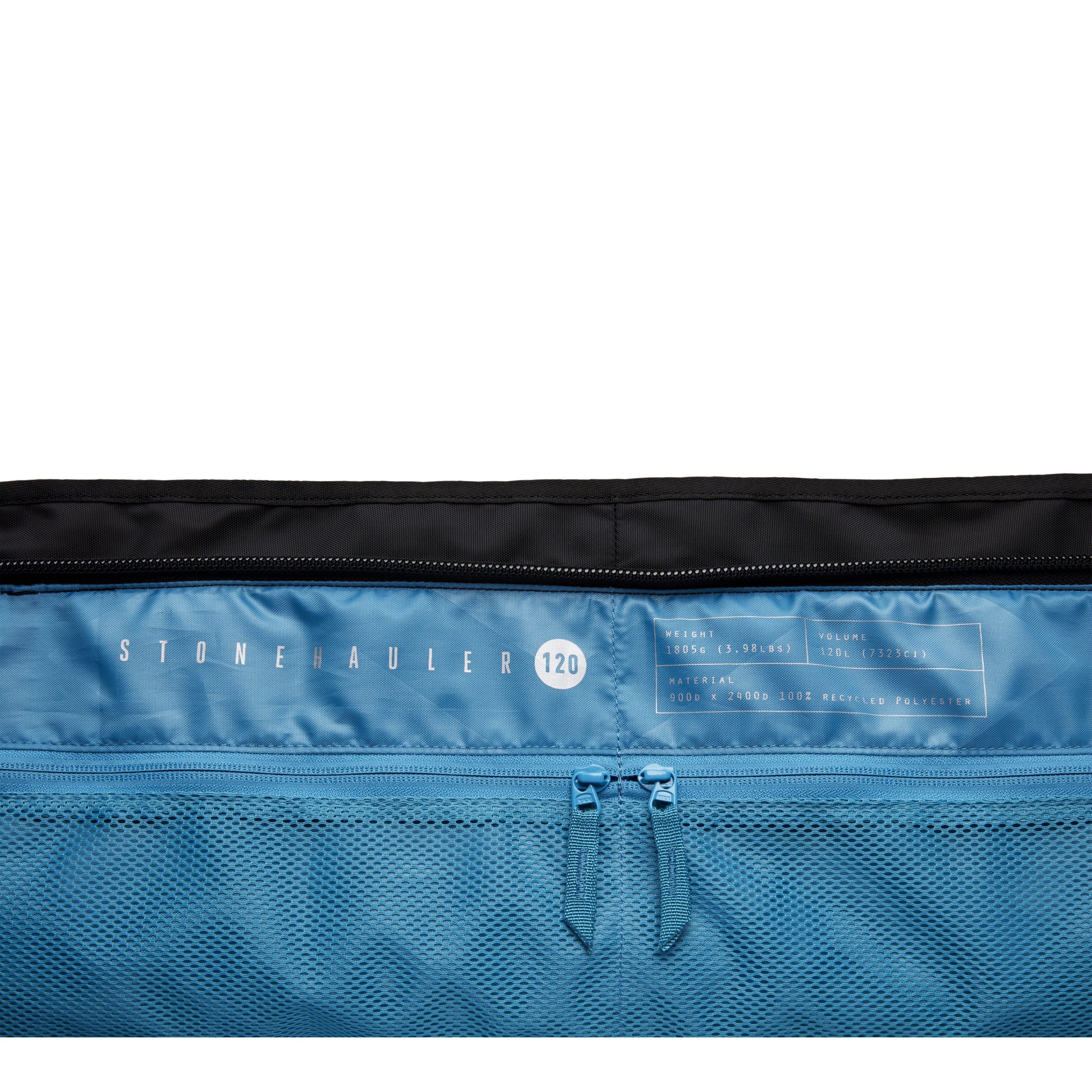 Engineered carry equipment to the greater ranges. The StoneHauler120 features our touchstone travel-bag innovations. like the Haul-loop carry system; a continuous. tubular webbing-loop that wraps the entire duffel and is tested to 2kN by the same machines that load test our carabiners and Camalots. This provides a secure clip-in and carry solution to keep you confident that your gear is secure. The two bale handles feature our Intergrated Shoulder Strap System and secure LockOut Connection for comfort while carrying maxed-out loads. The 120L features our side-to-side padded body construction as well. which consists of 5mm closed cell foam for puncture and fabric abrasion resistance while carrying gear. Two interior zipper pockets and dual exterior accessories pockets allow you to keep valuables organized. and the mono-mesh ID pocket gives it your stamp while on the move.