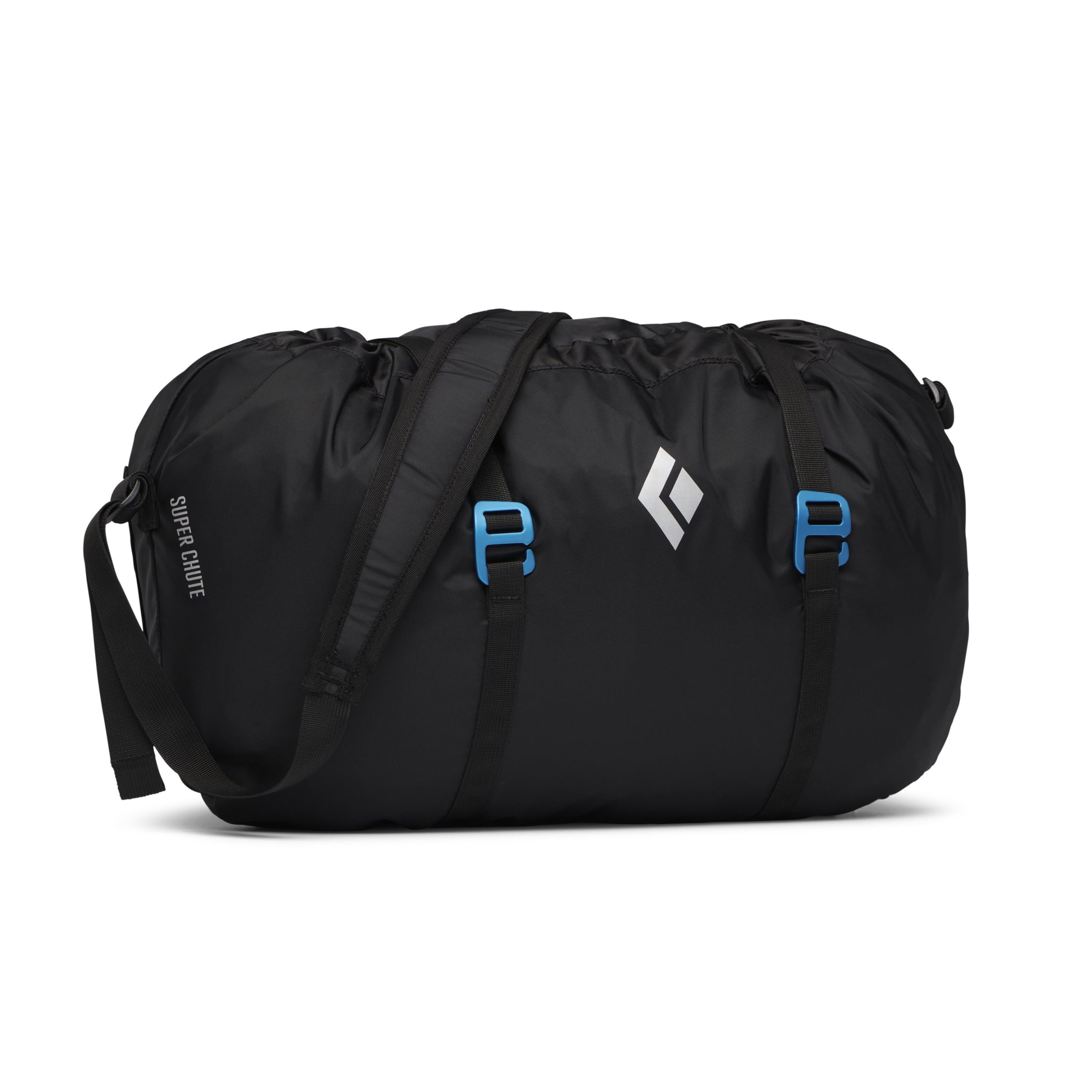 Barrel compression straps and a courier-style shoulder strap allow for compact. comfortable carrying to and from the crag. The Super Chute has room for up to an 80-meter rope. two internal tie-in points expedite rope management. and a rope ID slot keeps you organized.