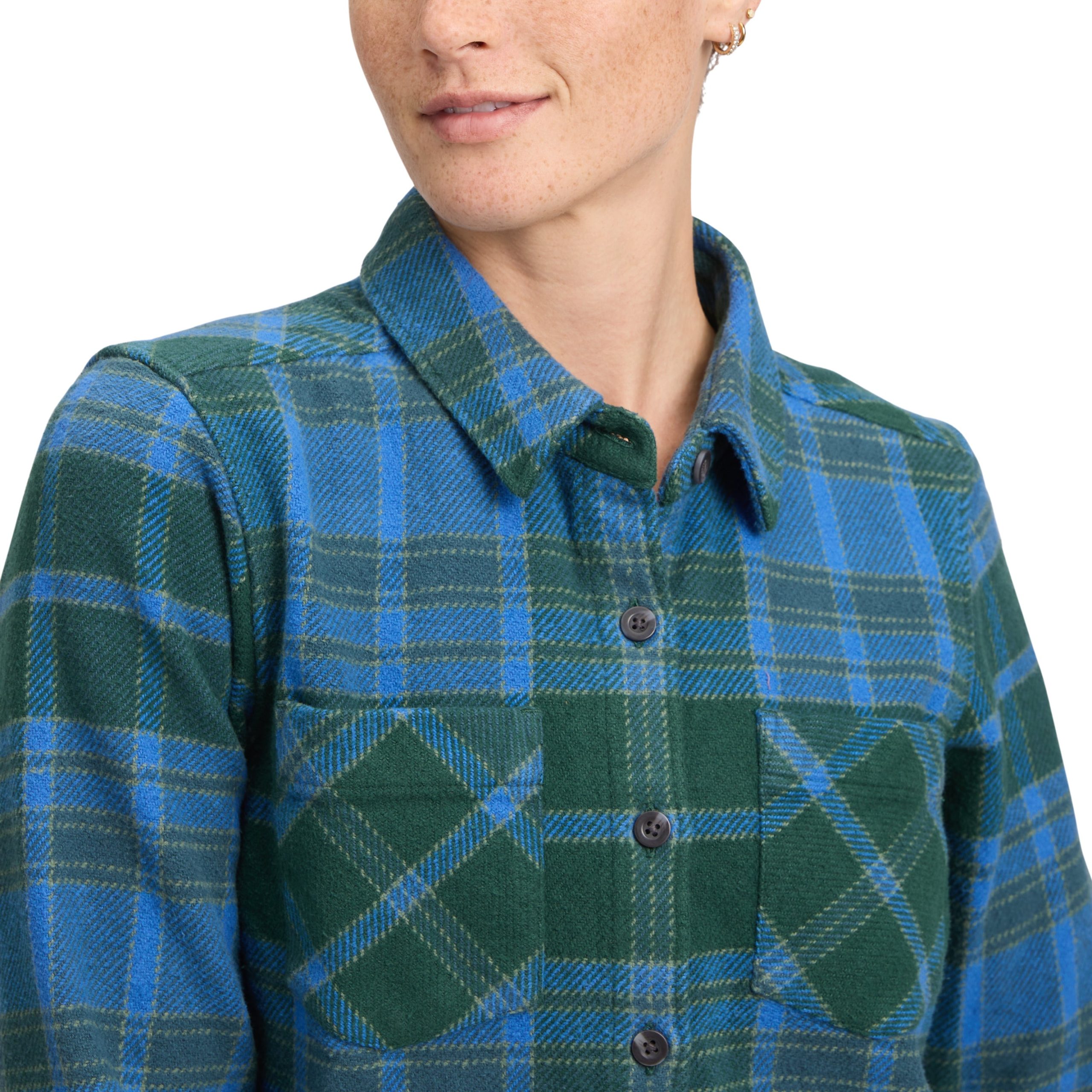 A boxy. brushed organic cotton button-up that is designed to be worn with other layers. this flannel is ideal for cold days in the boulders.