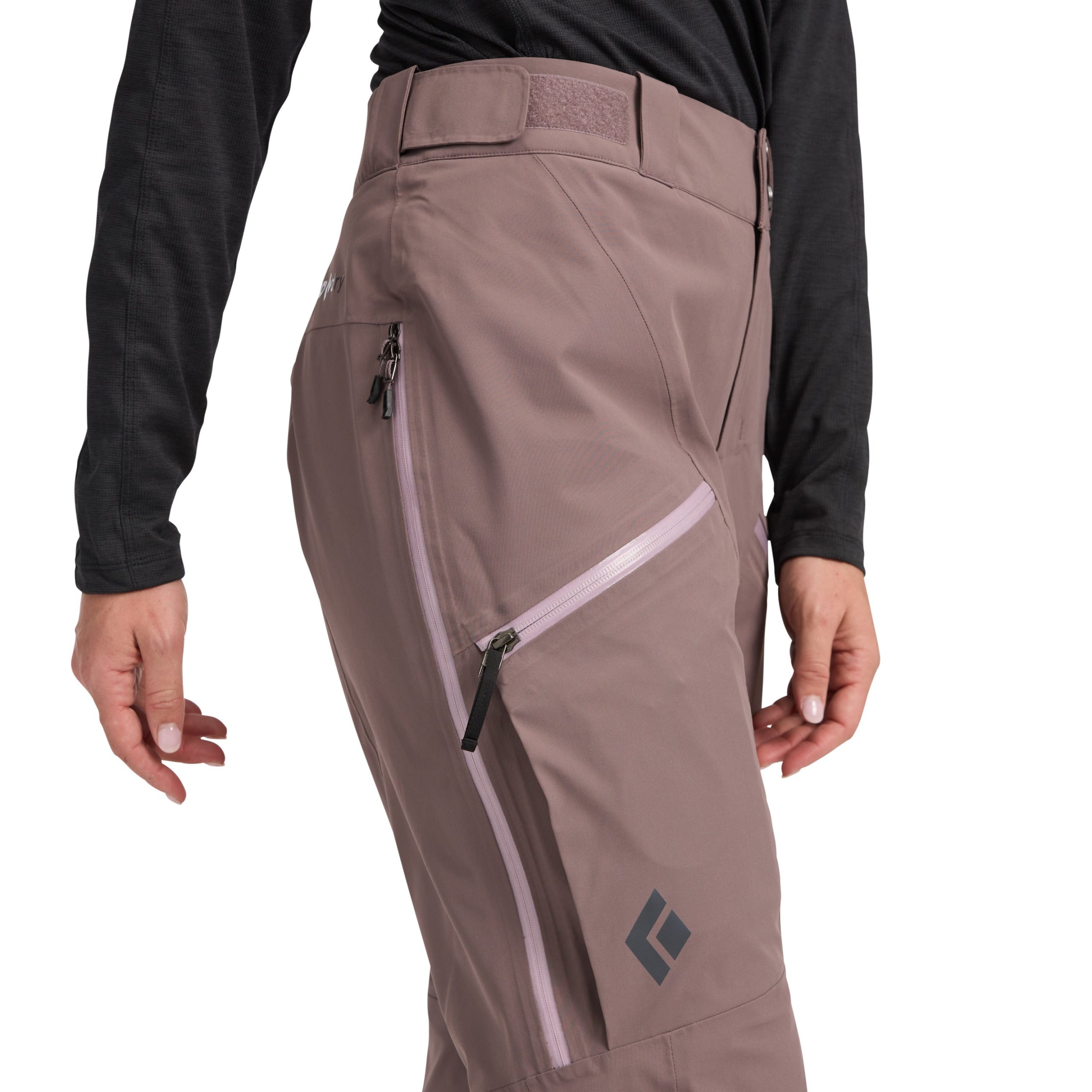 Lined with zoned Thermolite insulation. these pants are breathable and mobile where you need it while providing added warmth for the rest of your lower body. Featuring 4-way stretch fabric and a movement-focused patterning for added mobility. this pant moves with you in the mountains. The Recon’s 3L BD.dry??? waterproof/ breathable solution keeps you dry on deep turns and storm days. The Recon features two zippered thigh pockets (with a low-profile electronics pocket on the right). A contoured waistband provides extra coverage and the ability to dial in fit with Velcro adjusts on the sides. snap closure. and belt loops. An integrated RECCO reflector adds a safety feature to the pants. while the instep patches guard against ski edges.