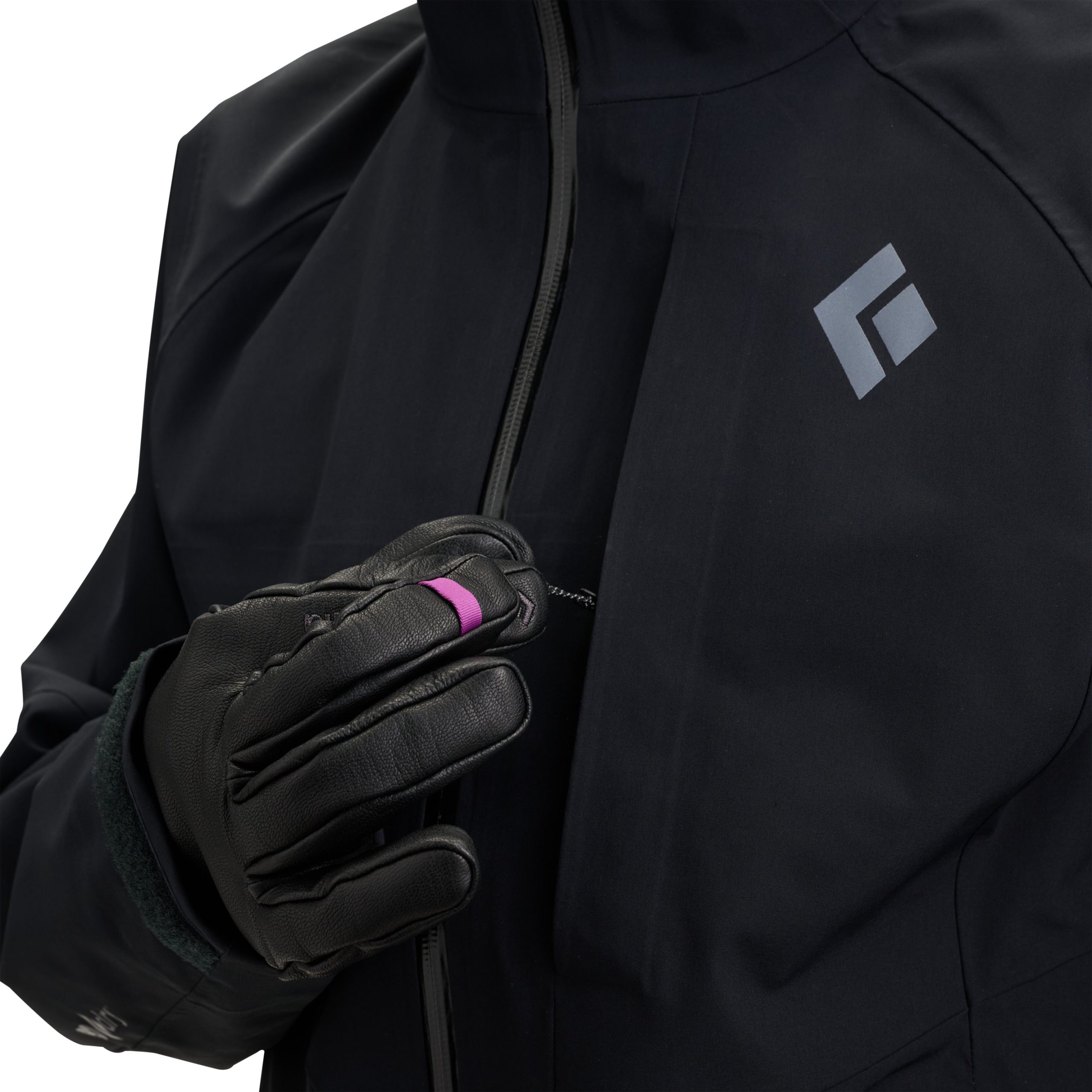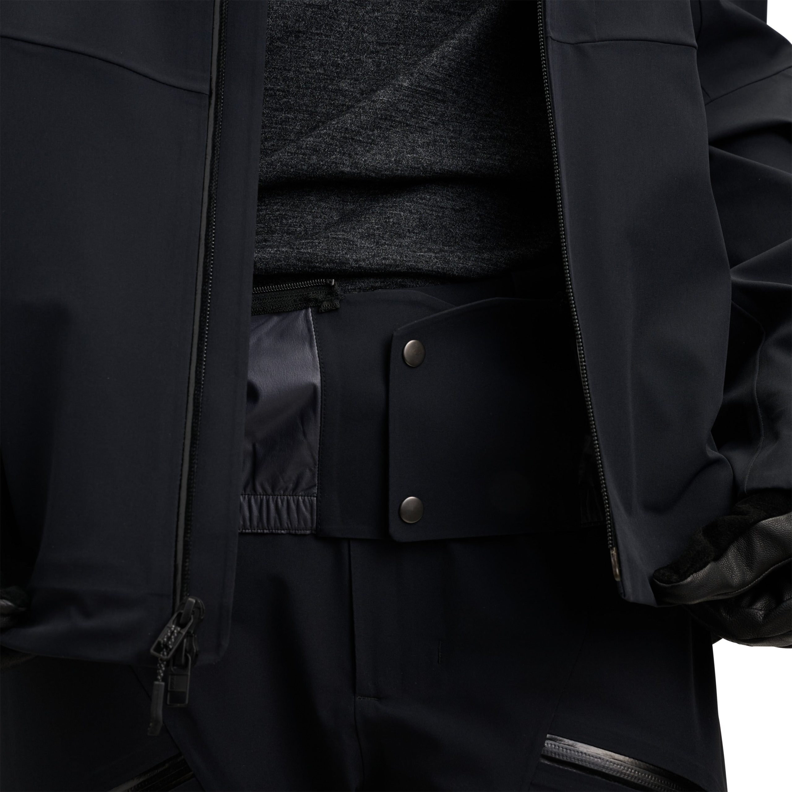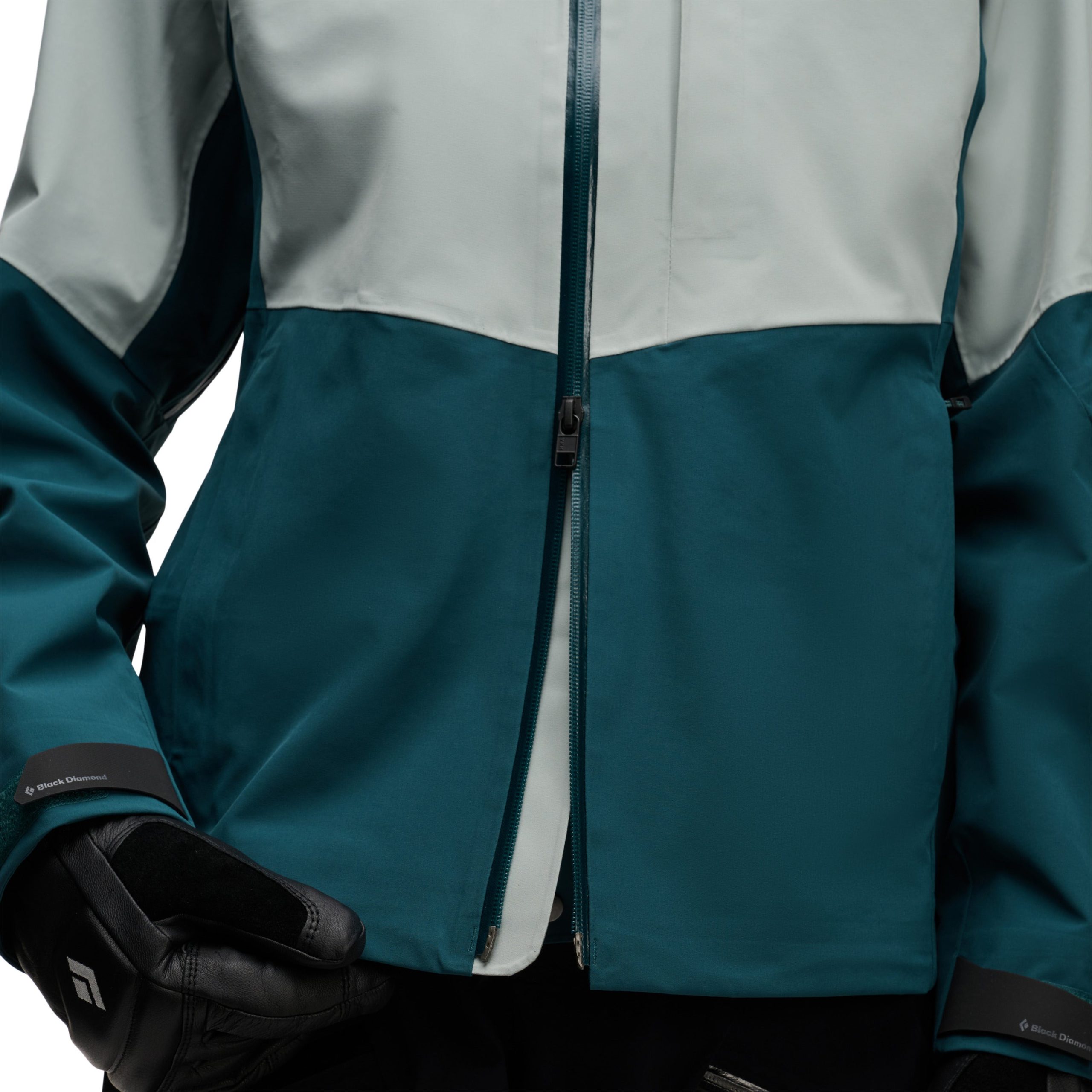 the Recon Stretch Shell is built with durable BD.dry? 3L stretch nylon fabric with a DWR finish without intentionally added PFAS. With one chest pocket for essentials and two mesh internal drop pockets for skins or extra layers. the Recon features ample storage. while the jacket’s removable powder skirt adds versatility for variable conditions. The Recon also has pit zip vents for easy temperature regulation on the skin track. a waterproof front zipper. and a ski-helmet-compatible hood for added protection on storm days. Pattering and fit allow for freedom of movement and all-day comfort. Internal RECCO? technology makes you searchable.