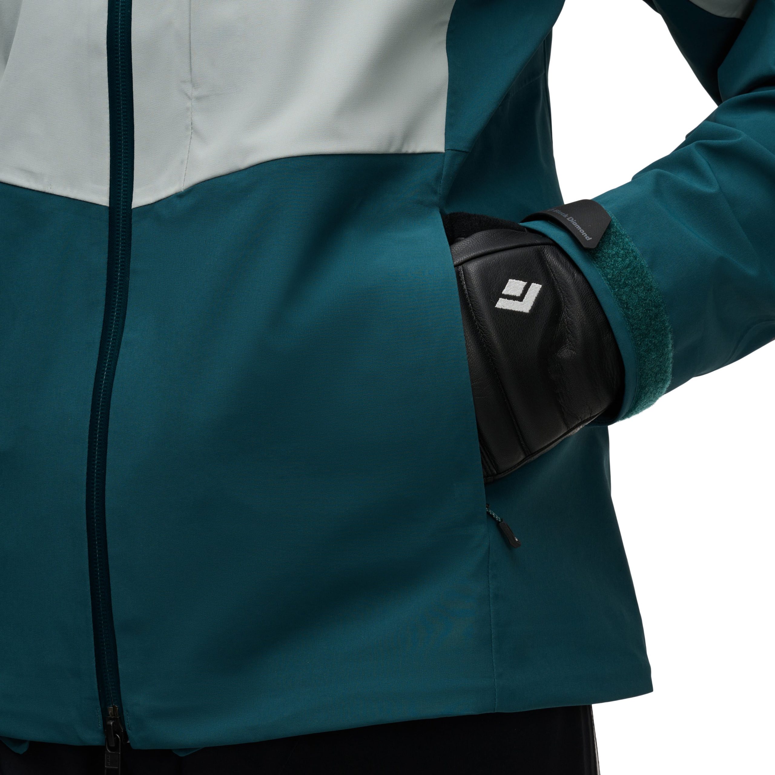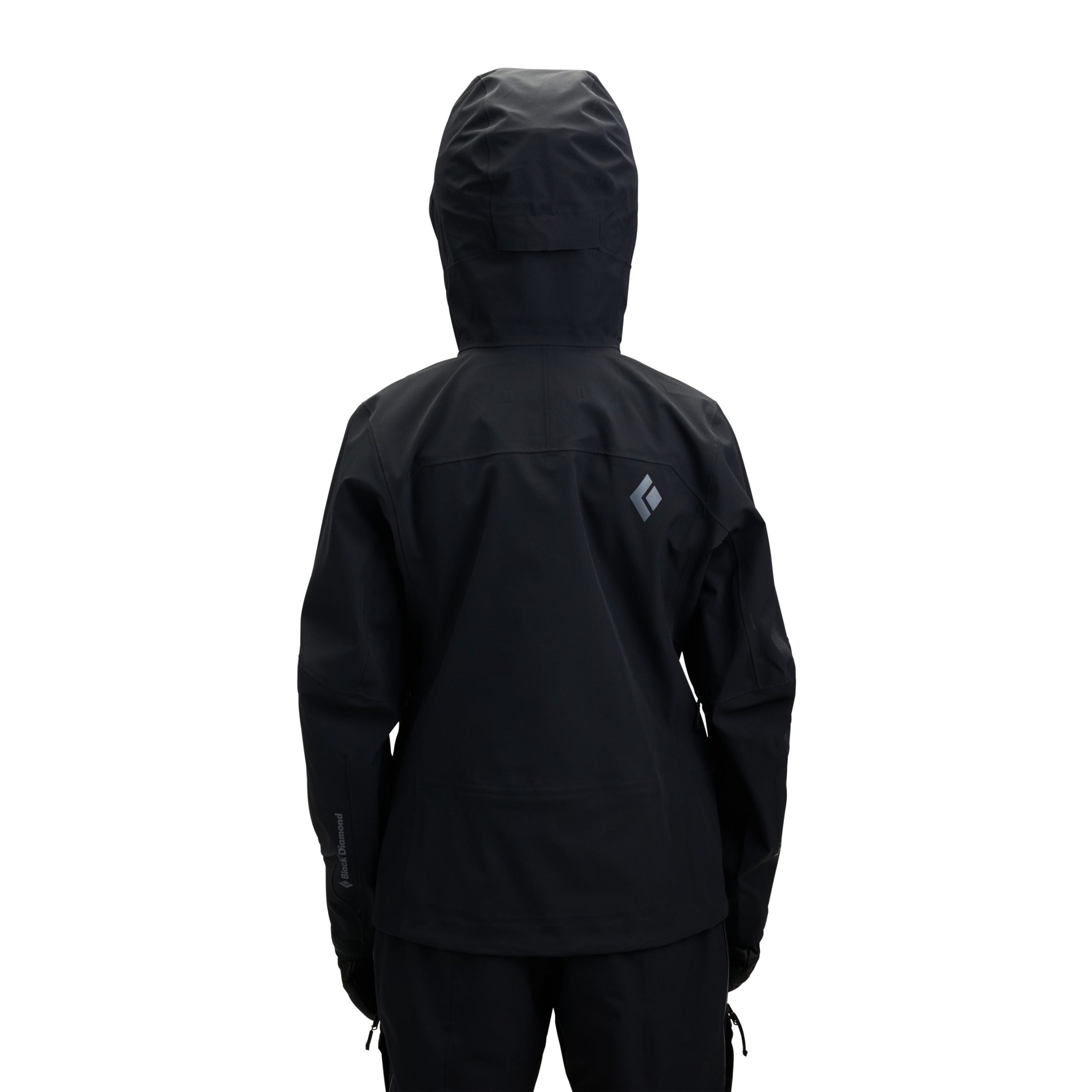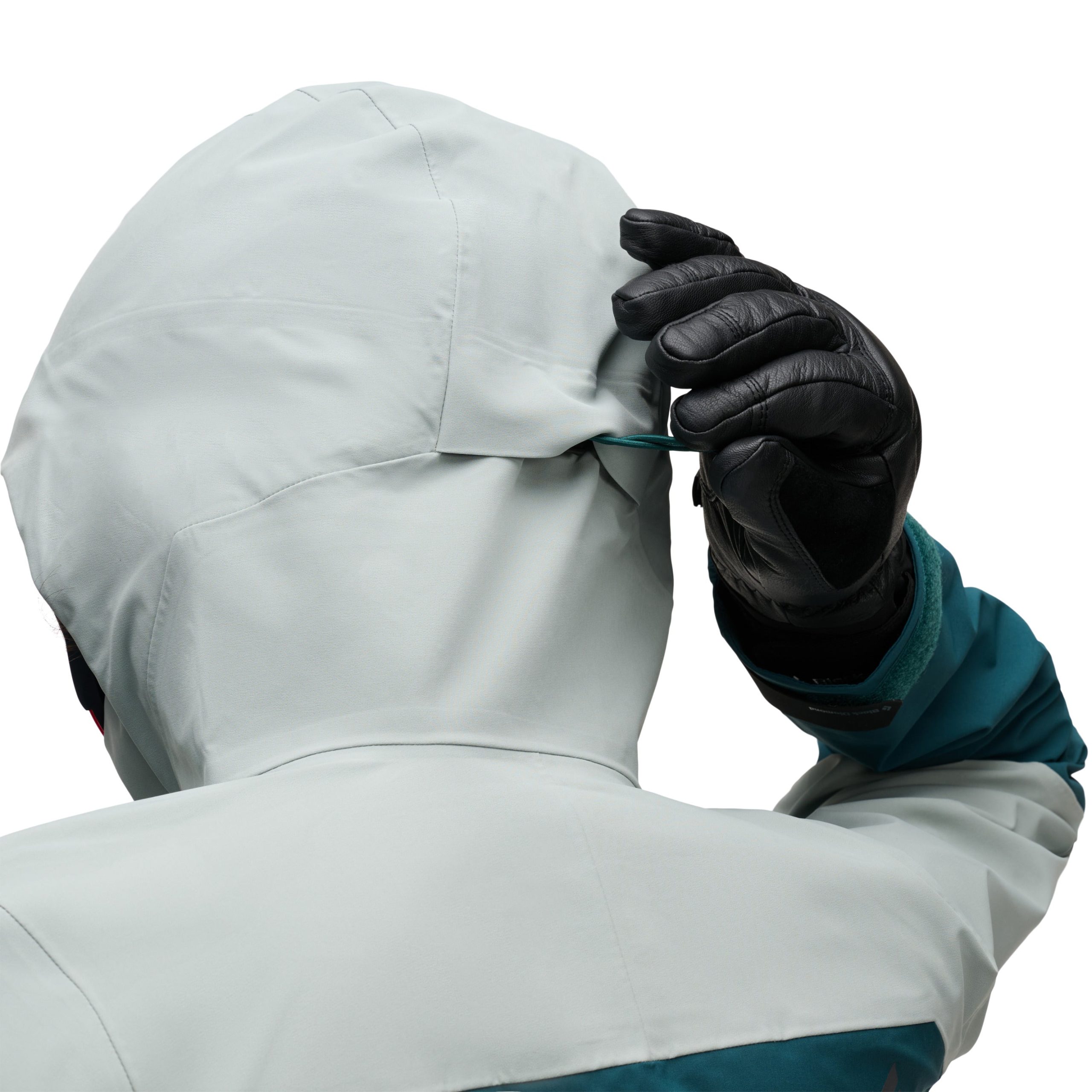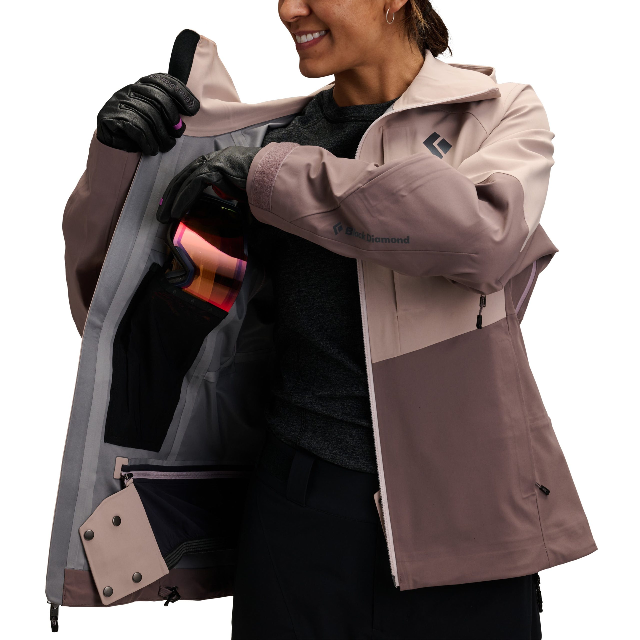 the Recon Stretch Shell is built with durable BD.dry? 3L stretch nylon fabric with a DWR finish without intentionally added PFAS. With one chest pocket for essentials and two mesh internal drop pockets for skins or extra layers. the Recon features ample storage. while the jacket’s removable powder skirt adds versatility for variable conditions. The Recon also has pit zip vents for easy temperature regulation on the skin track. a waterproof front zipper. and a ski-helmet-compatible hood for added protection on storm days. Pattering and fit allow for freedom of movement and all-day comfort. Internal RECCO? technology makes you searchable.