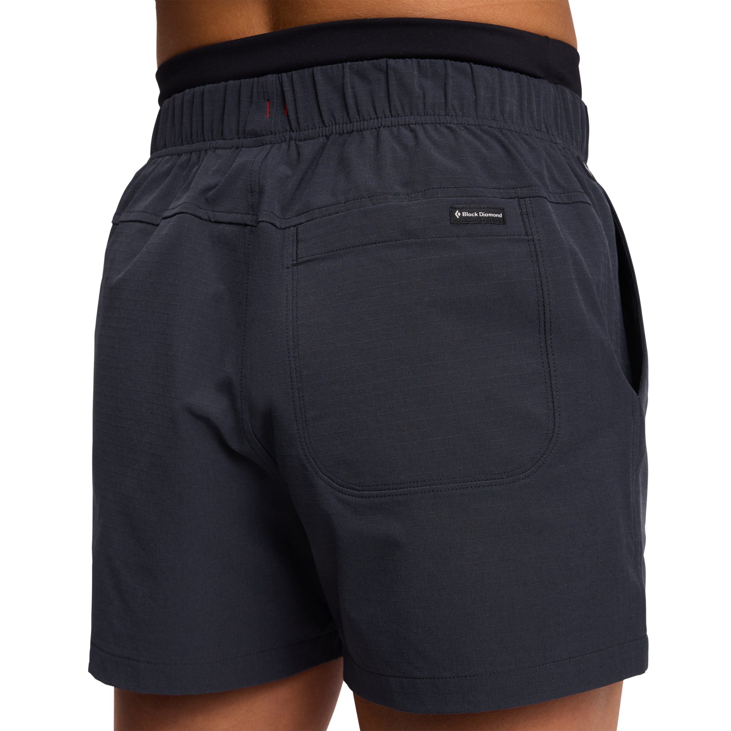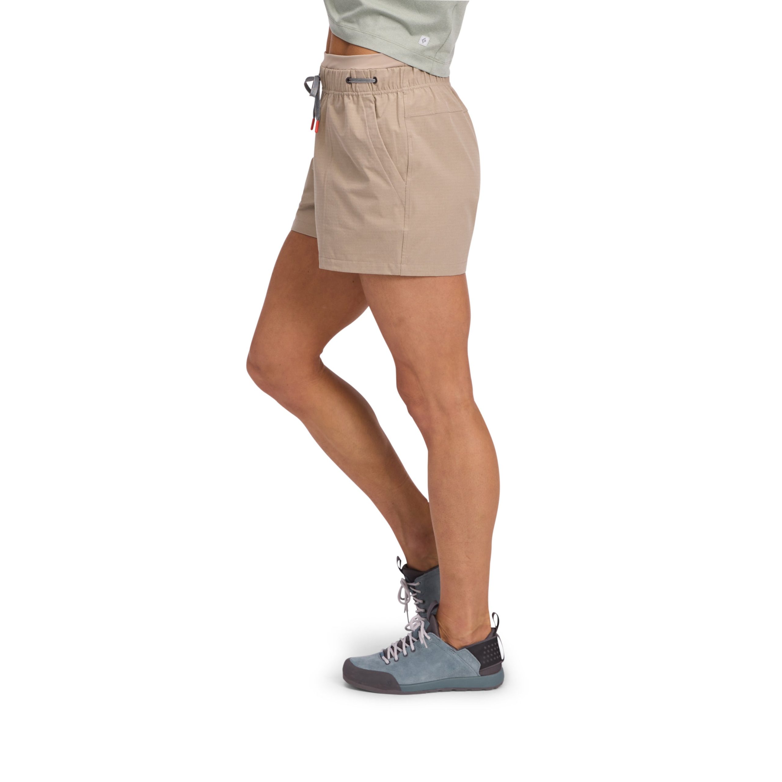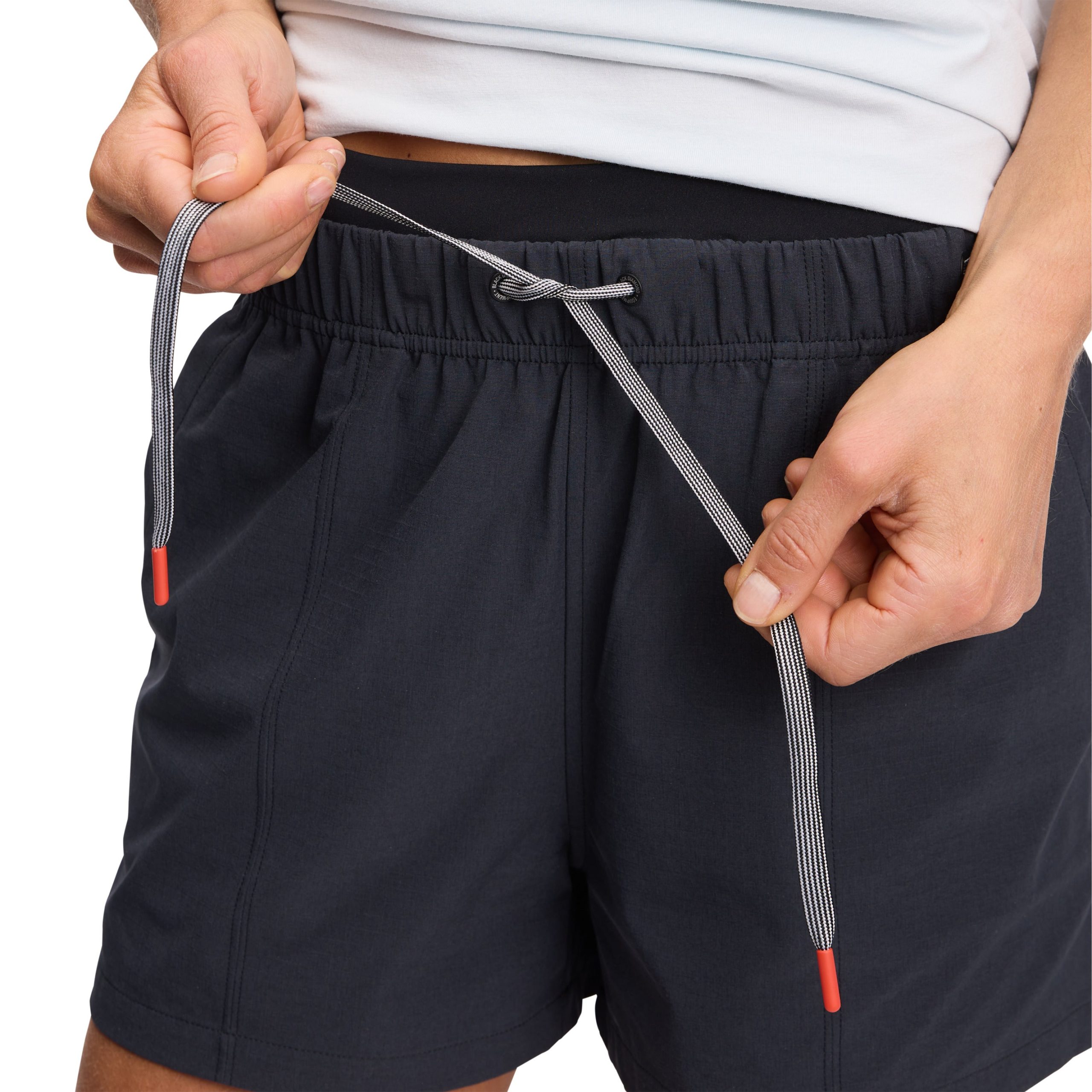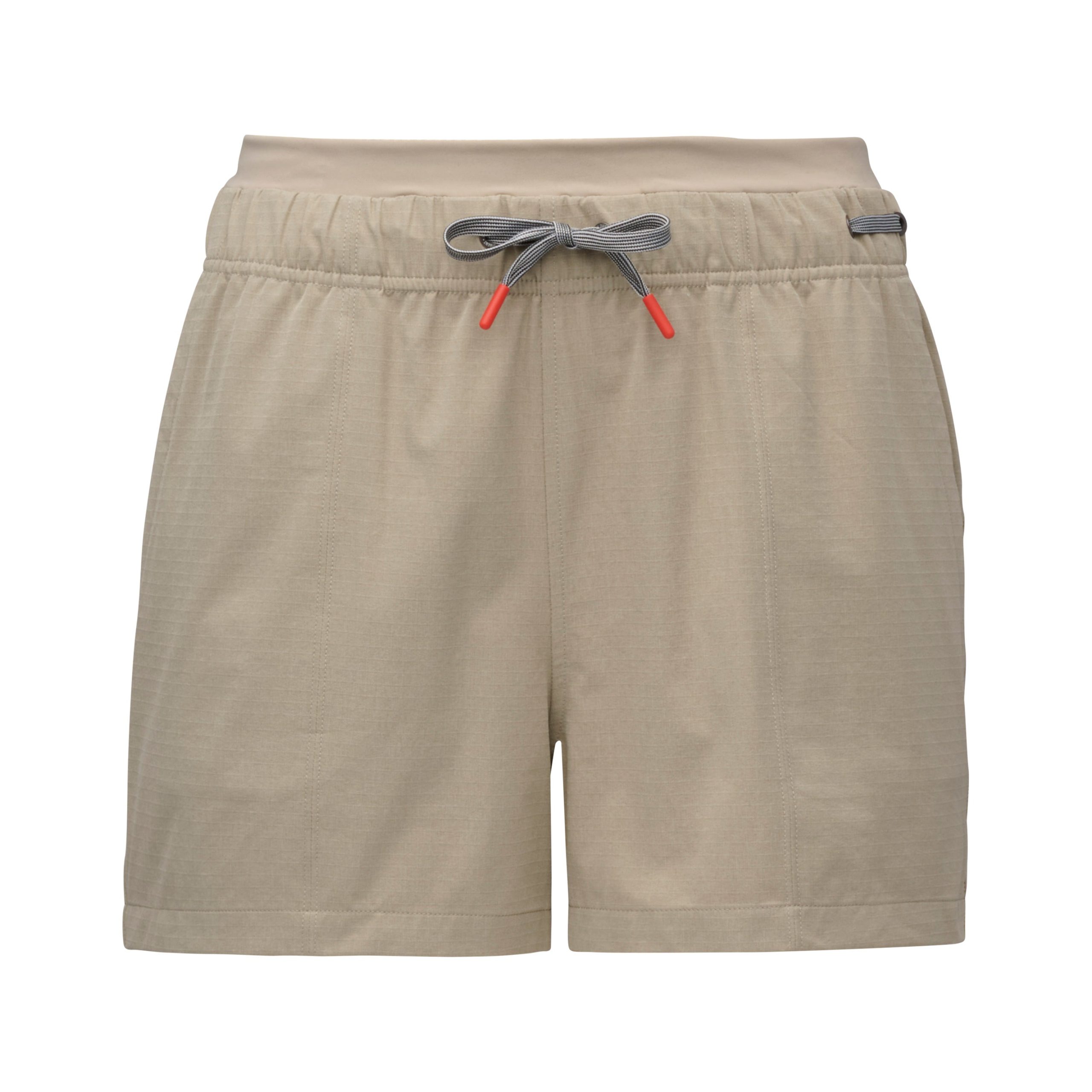 A 50% recycled synthetic ripstop fabric makes these shorts feel light and breathable without compromising durability. An elastic waist with an integrated drawstring belt. plus two hand pockets and a rear snap pocket round out the features on these simple. yet stylish. shorts.